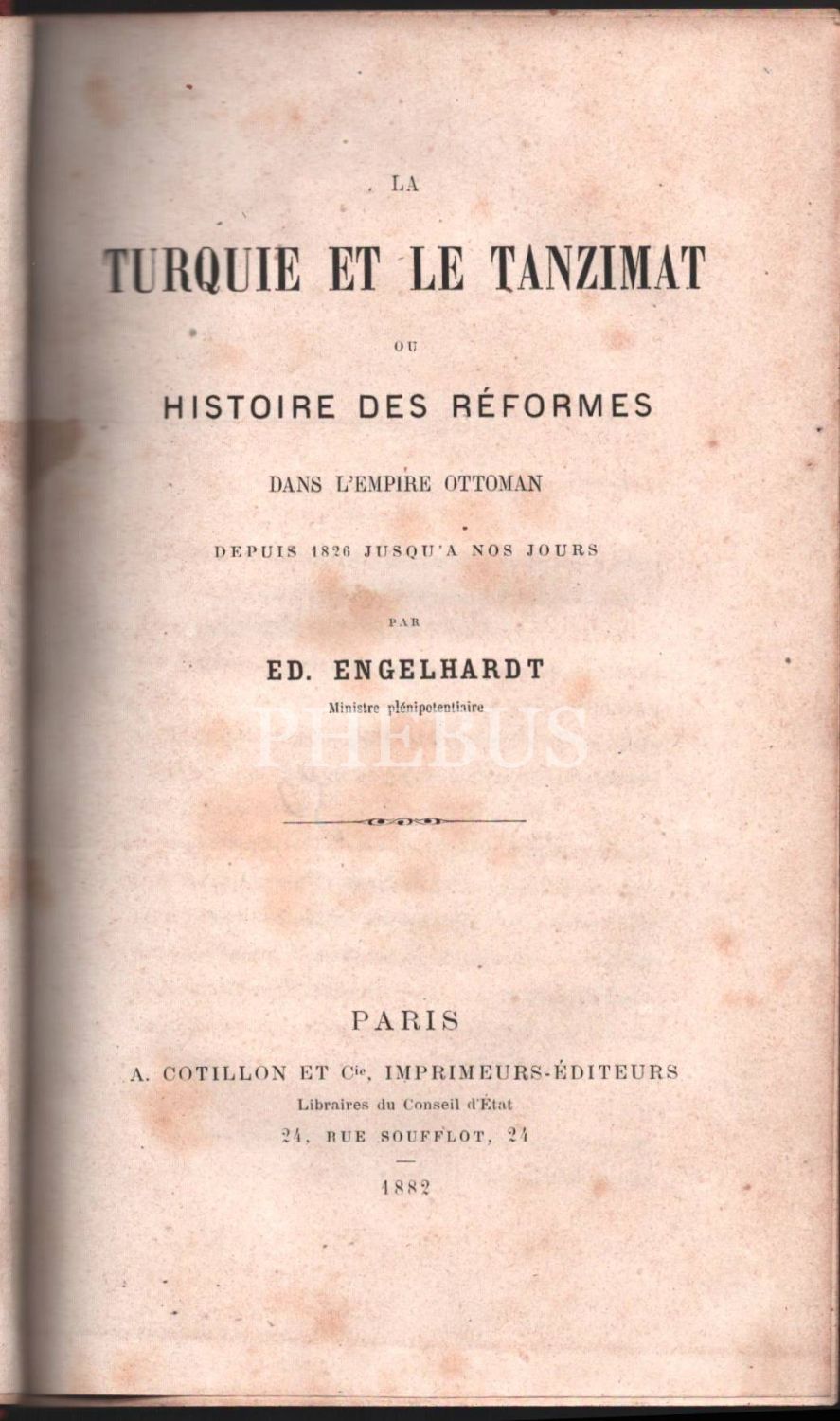 LA TURQUIE ET LA TANZIMAT OU HISTOIRE DES REFORMES, Ed. Engelhardt, Paris - 1882, 331 sayfa, 14x22 cm