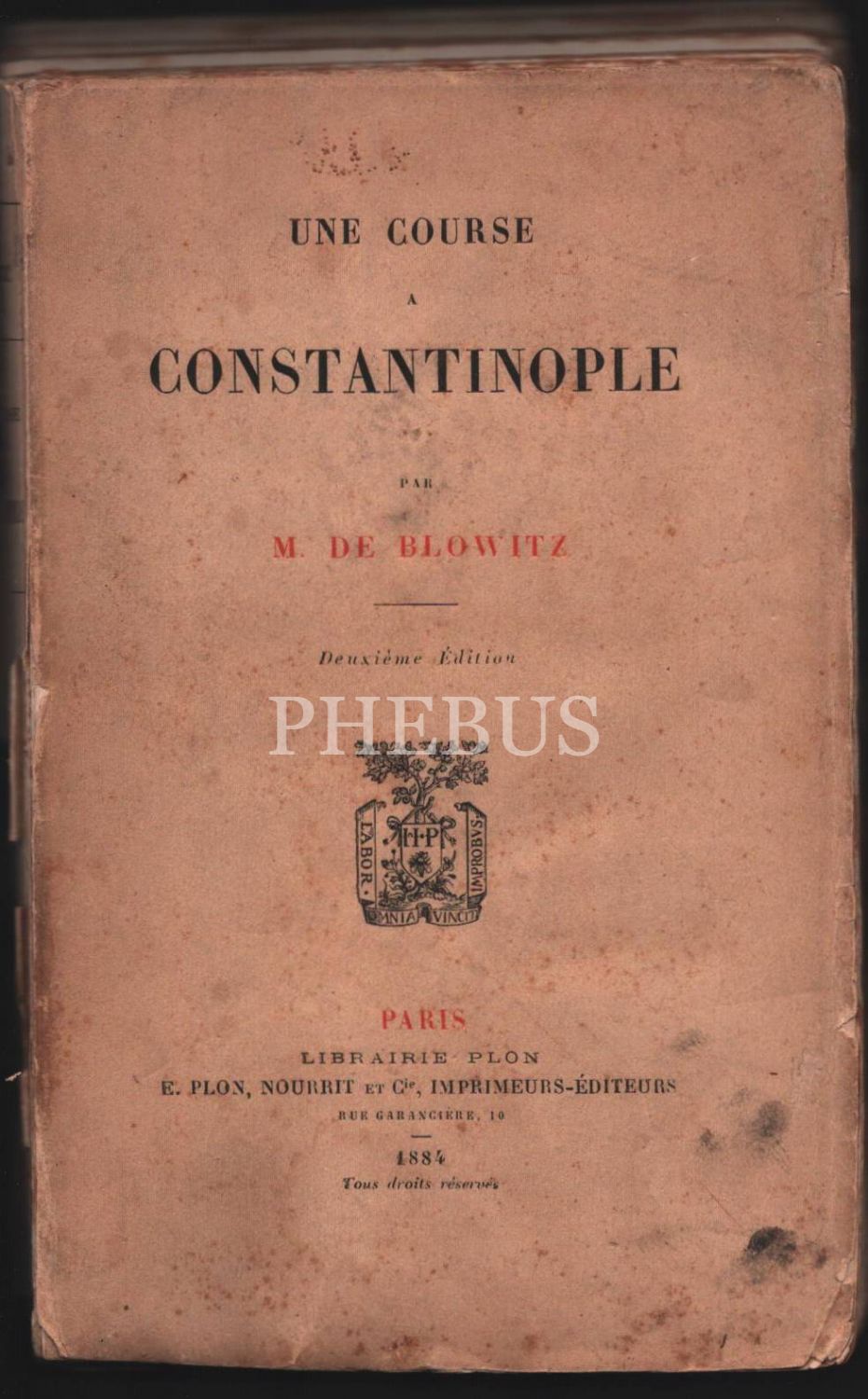UNE COURSE CONSTANTİNOPLE, M. De Blowitz, Paris - 1884, 368 sayfa, 12x19 cm, haliyle