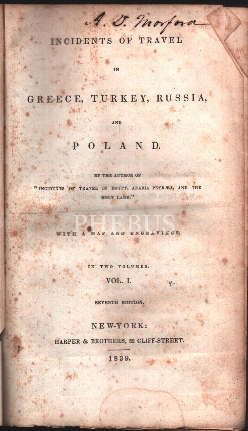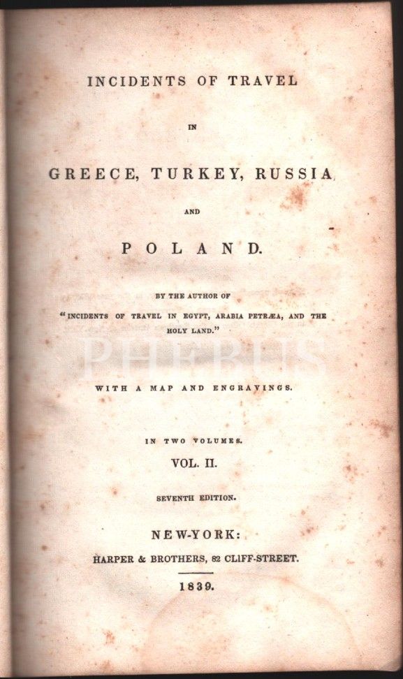 INCIDENTS OF TRAVEL IN GREECE, TURKEY, RUSSIA AND POLAND (Cilt I-II), New York - 1839, 268+275 sayfa, 12x19 cm