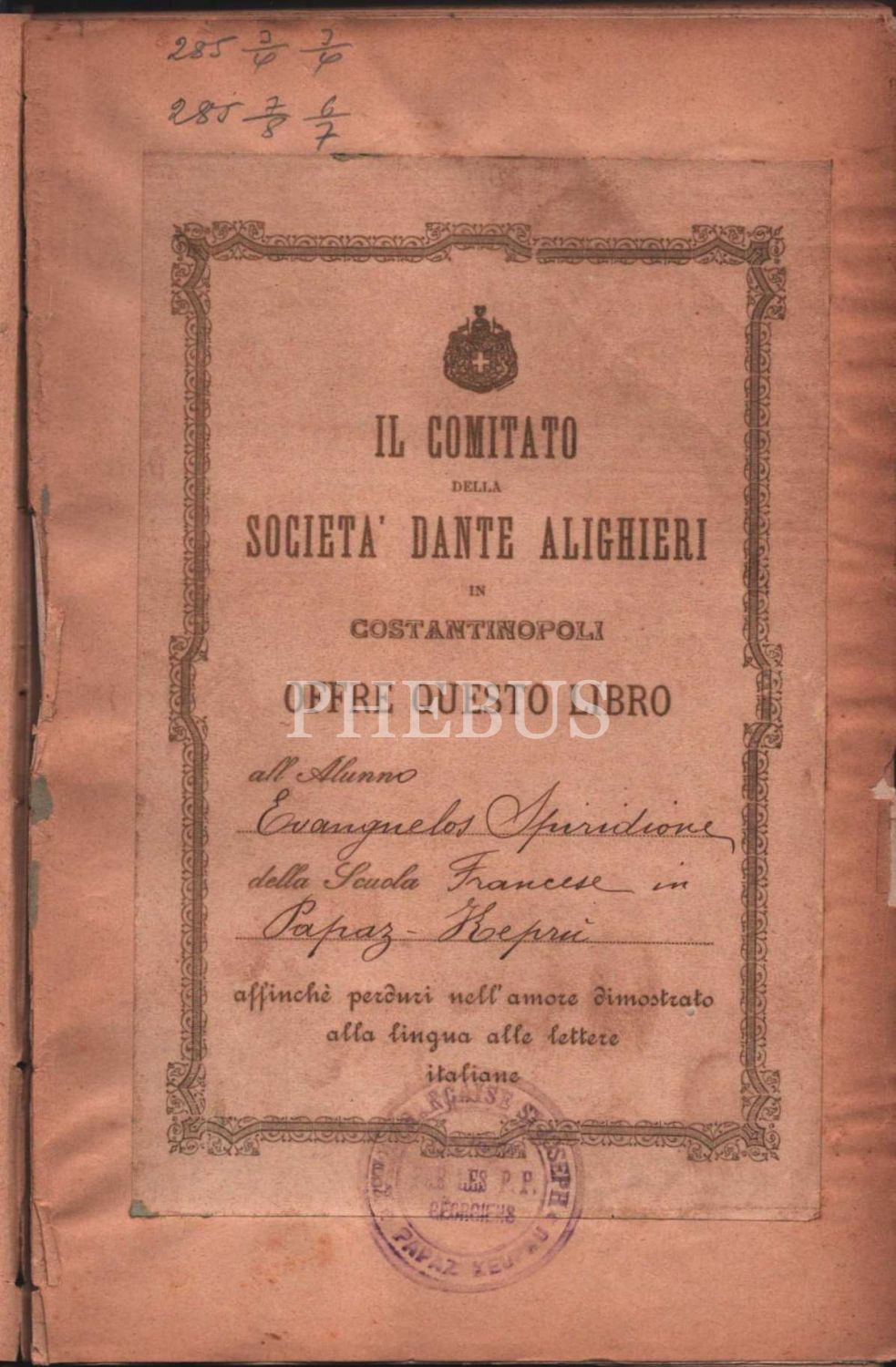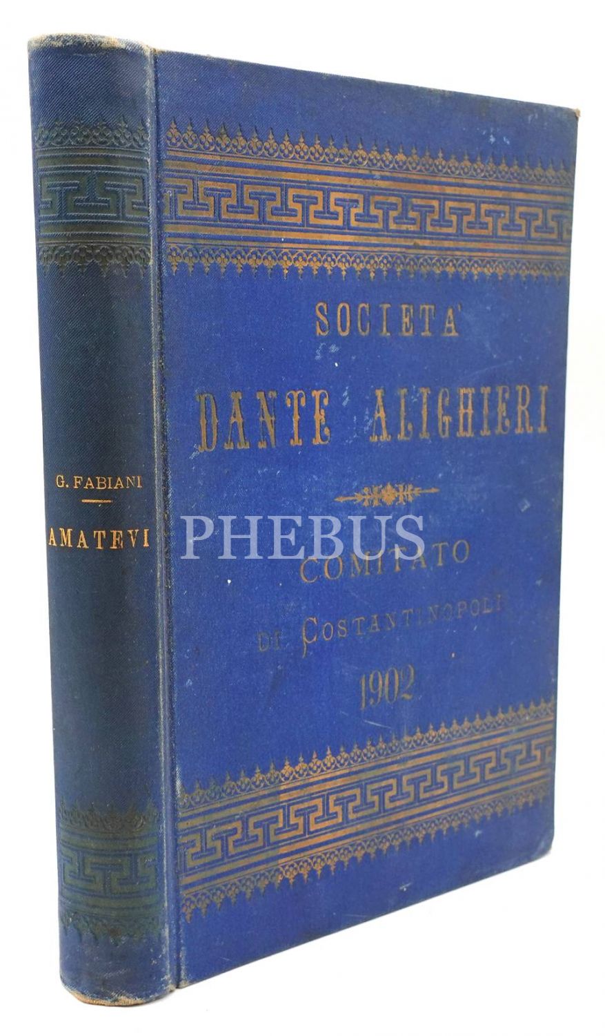"Societa Dante Alighieri Comitato Di Constantinopoli 1902" [İstanbul Dante Alighieri Derneği] yazılı cildinde AMATEVI, Guido Fabiani, 210 sayfa, 16x23 cm