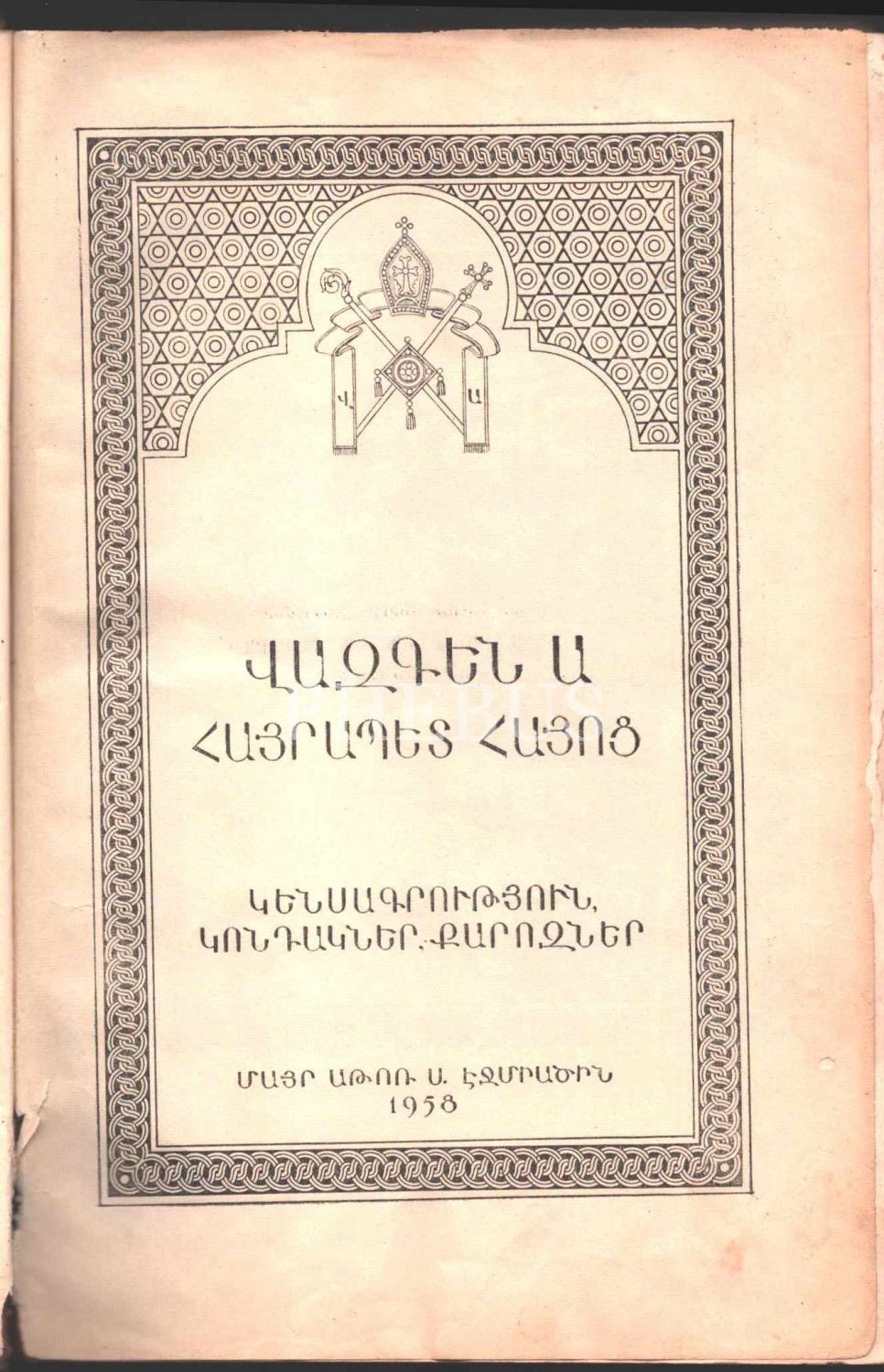 Ermenice kitap, 1958, 402 sayfa, 18x26 cm