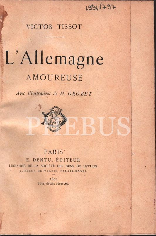 L´ALLEMAGNE AMOUREUSE, Victor Tissot, Paris - 1893, 440 sayfa, 12x18 cm
