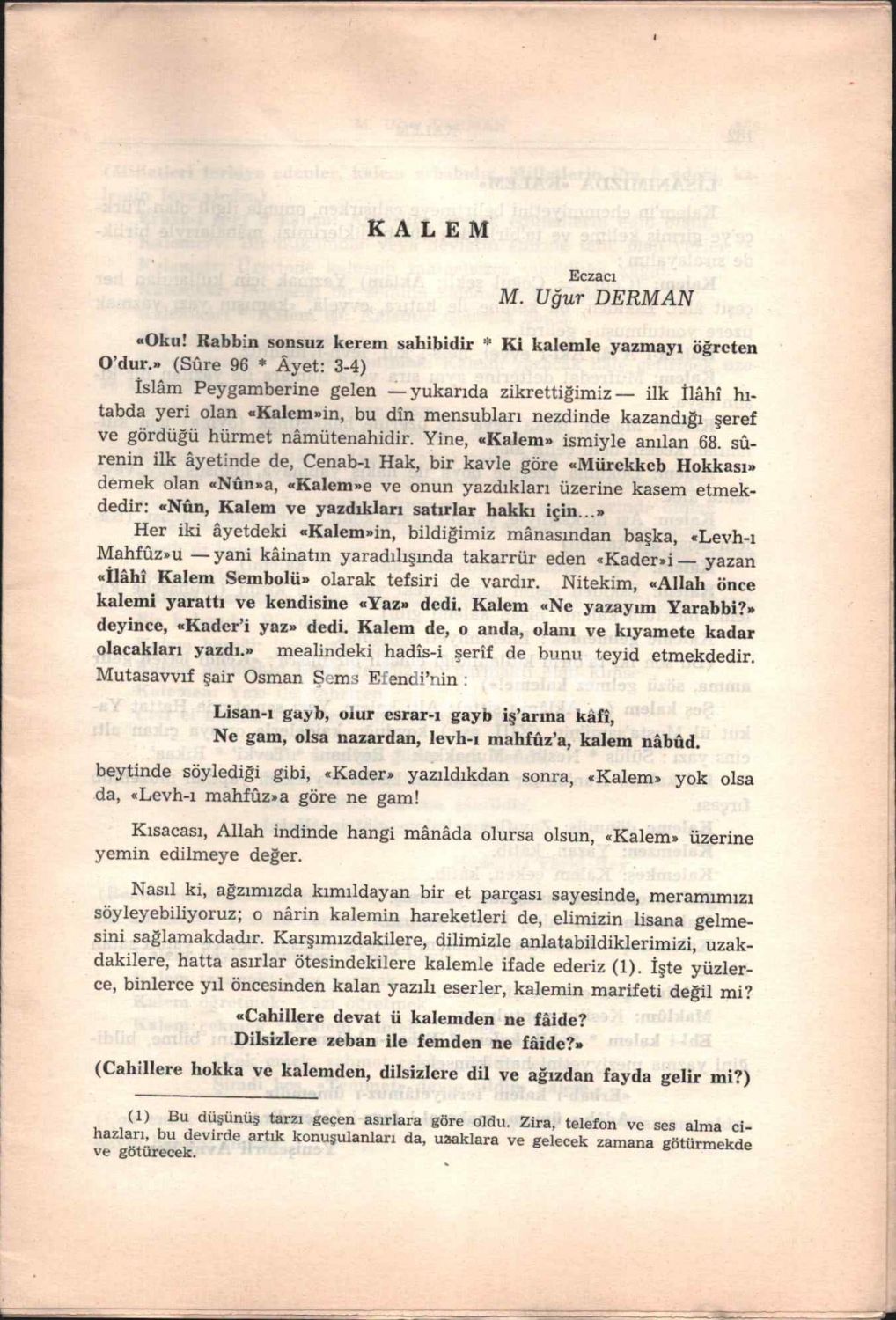 KALEM, Eczacı M. Uğur Derman, 16 sayfa, 18x24 cm