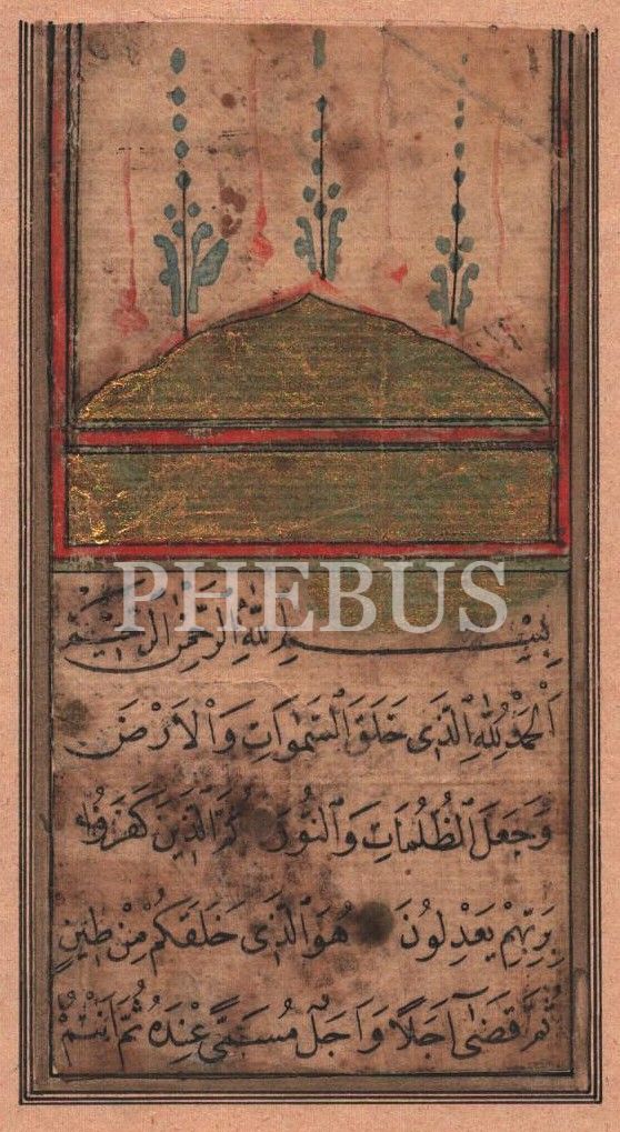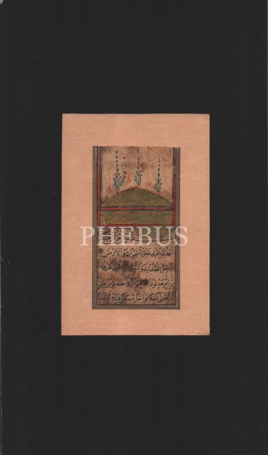 Nesih yazı ile Enam Suresi ilk ayetleri, altın tezhipli, 6x12 cm