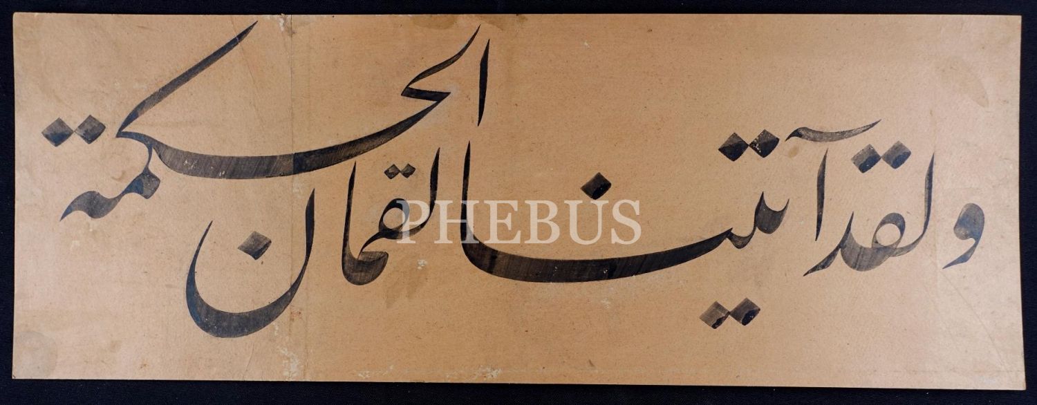 Nefis bir celî ta´lik hat ile "Ve lekad âteynâ Lokmâne´l-hikmete (Lokman/12)", 21x56 cm