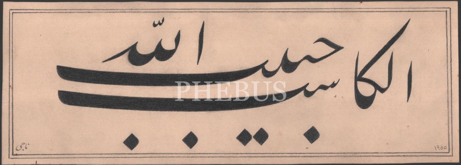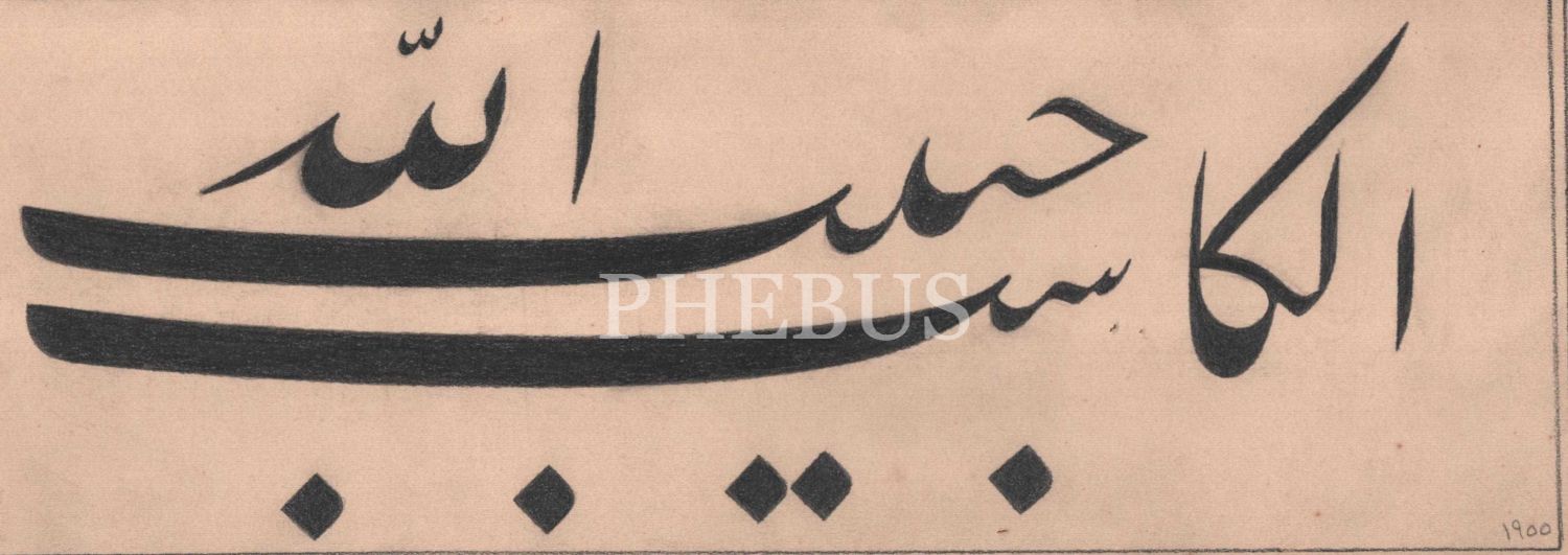 Nâci (Akverdi) ketebeli, 1968 tarihli kurşun kalem celî ta´lik yazı; "el-Kâsibü habîbullah", 11x31 cm