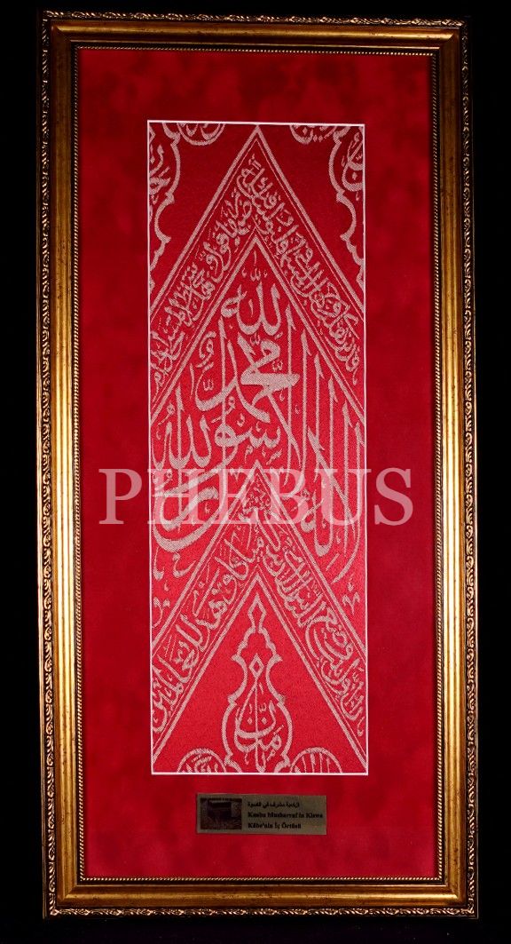 Kâbe-i Muazzama´nın iç örtülerinden bir parça, örtü: 17x49 cm, çerçeve: 33x69 cm