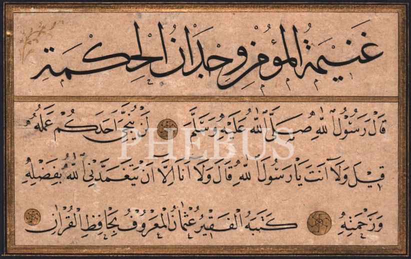 "Mü'minin ganimeti hikmeti bulmaktır" Hoca işi sülüs-nesih kıt´a, 11x18 cm