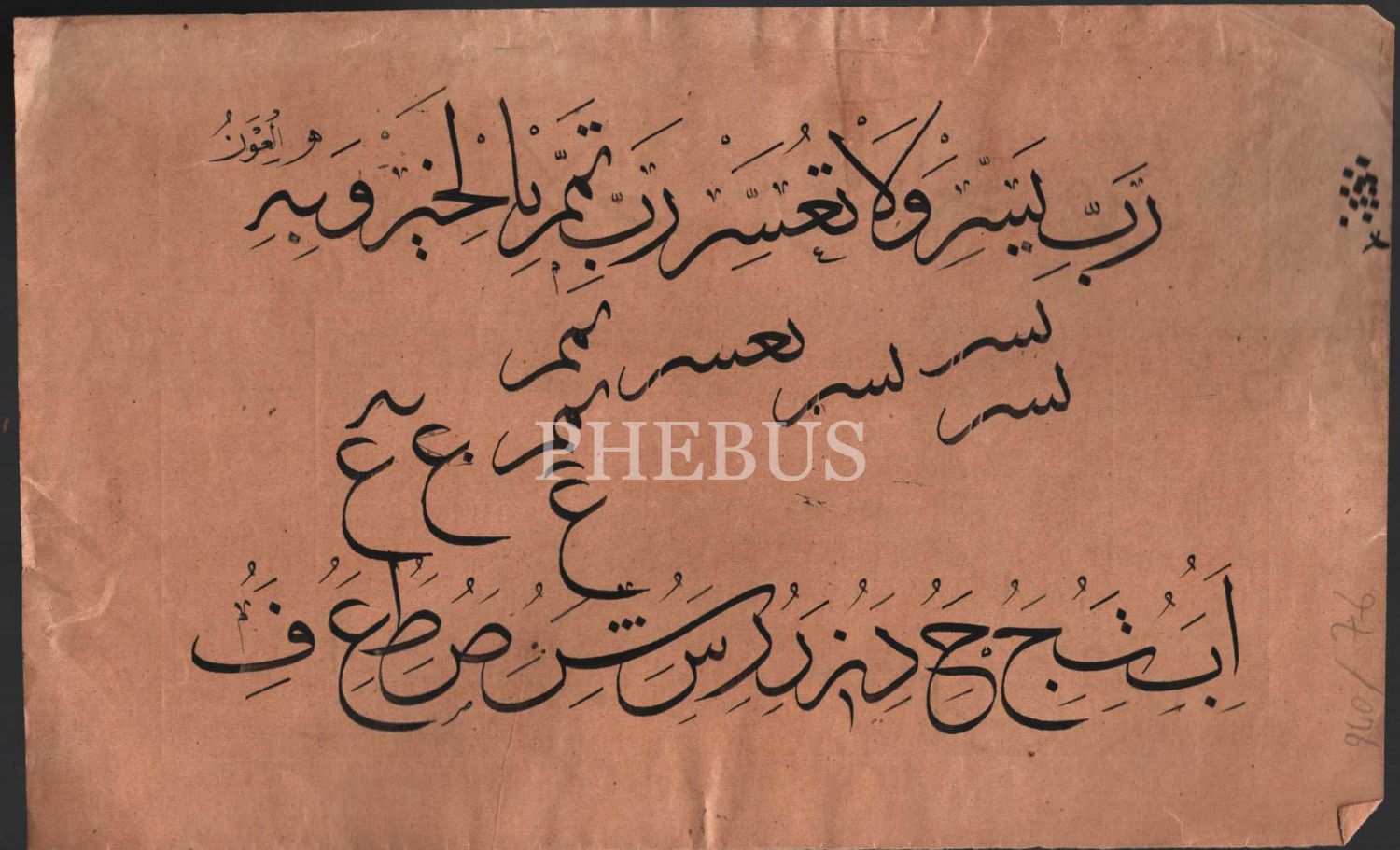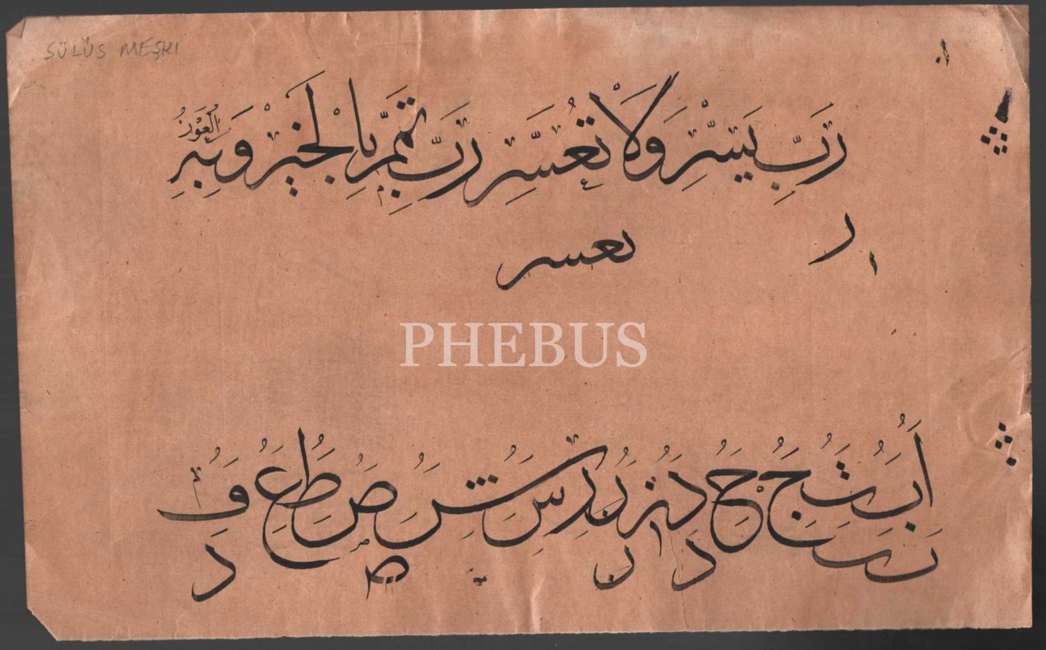 Hoca işi sülüs Rabbi yessir meşki üzerinde hoca çıkarmaları, önlü-arkalı 15x24 cm