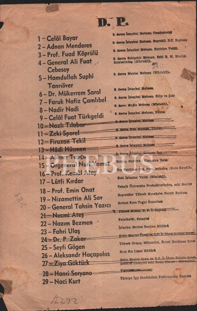 Demokrat Parti kurucu, mebus ve üyelerinin isim listesi, 18x28 cm