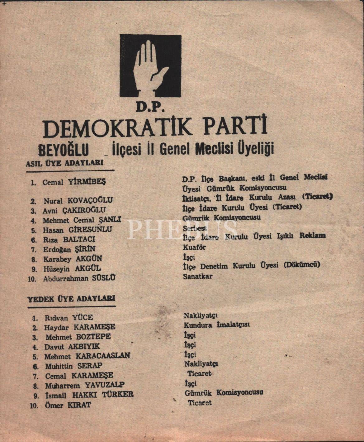 Demokratik Parti Beyoğlu il genel meclis üyeleri listesi, 15x18 cm