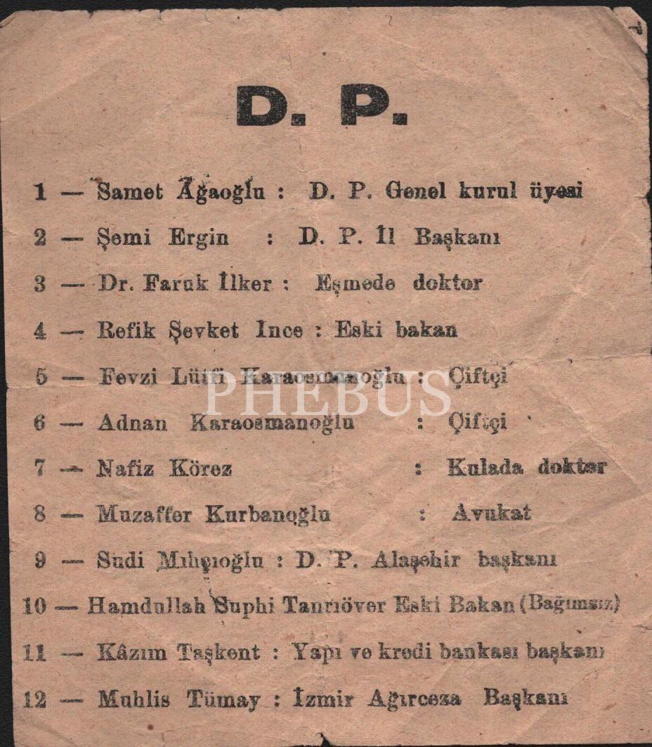 Bazı D.P. üyelerinin isim ve ünvan listesi, 12x13 cm