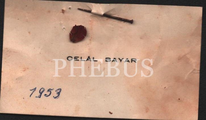 Celal Bayar´ın 1953 tarihli yaka kartı ve bir kuru gül, 8x12 cm