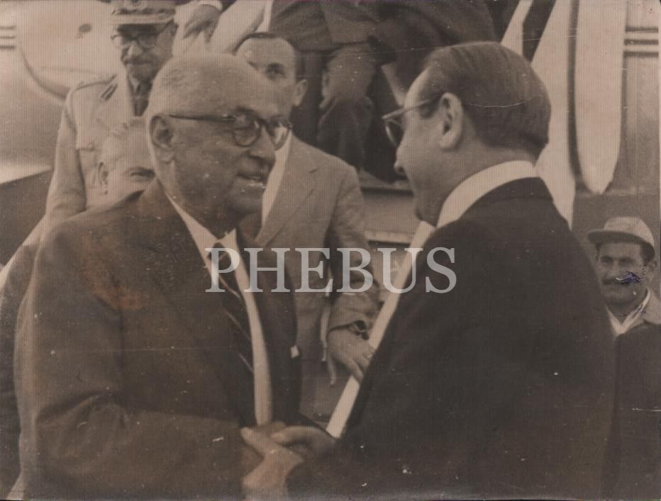 Celal Bayar ve Adnan Menderes selamlaşırken, 9x12 cm