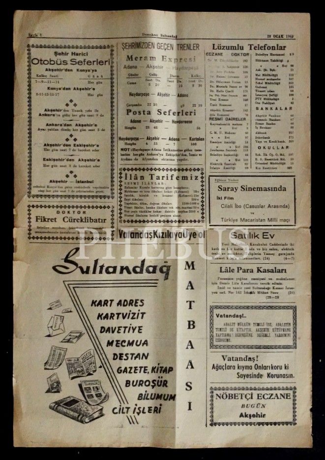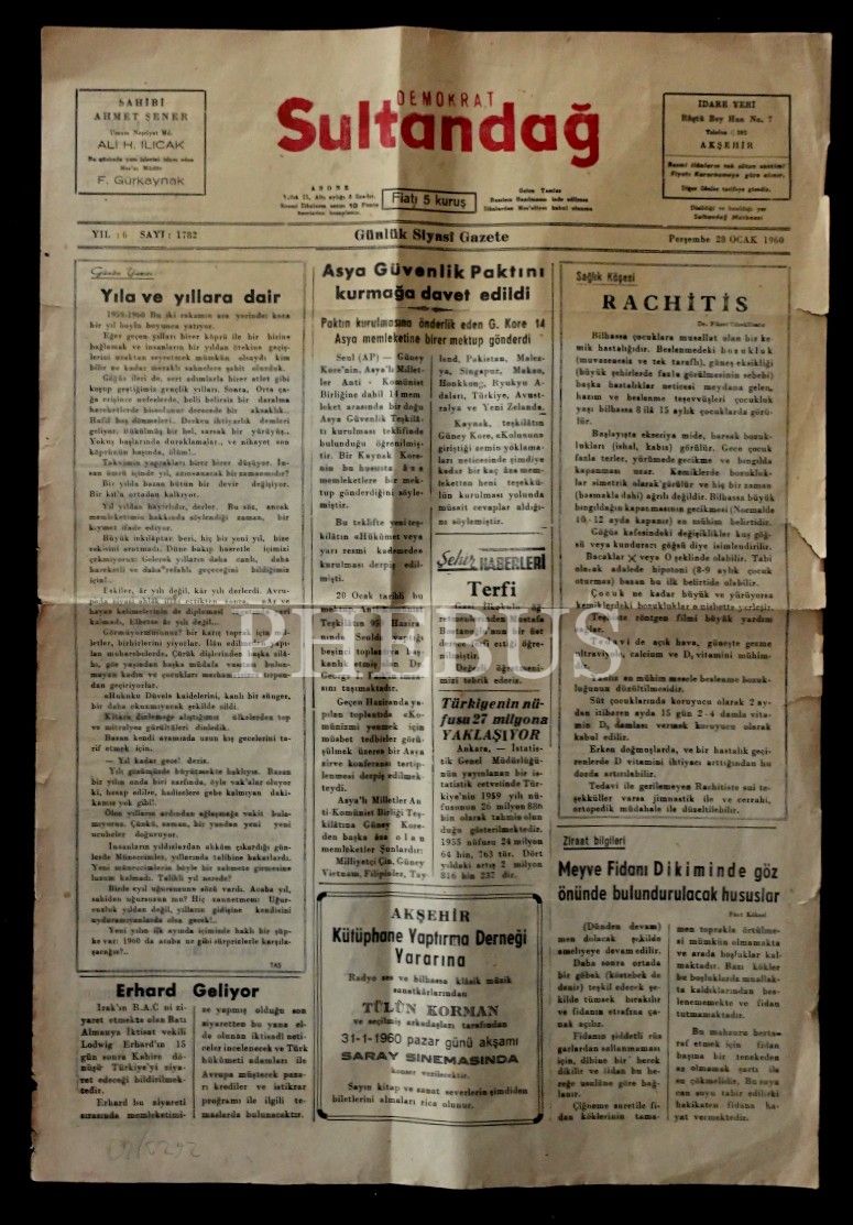 1960 tarihli Demokrat Sultandağ Gazetesi, 2 sayfa, 34x50 cm