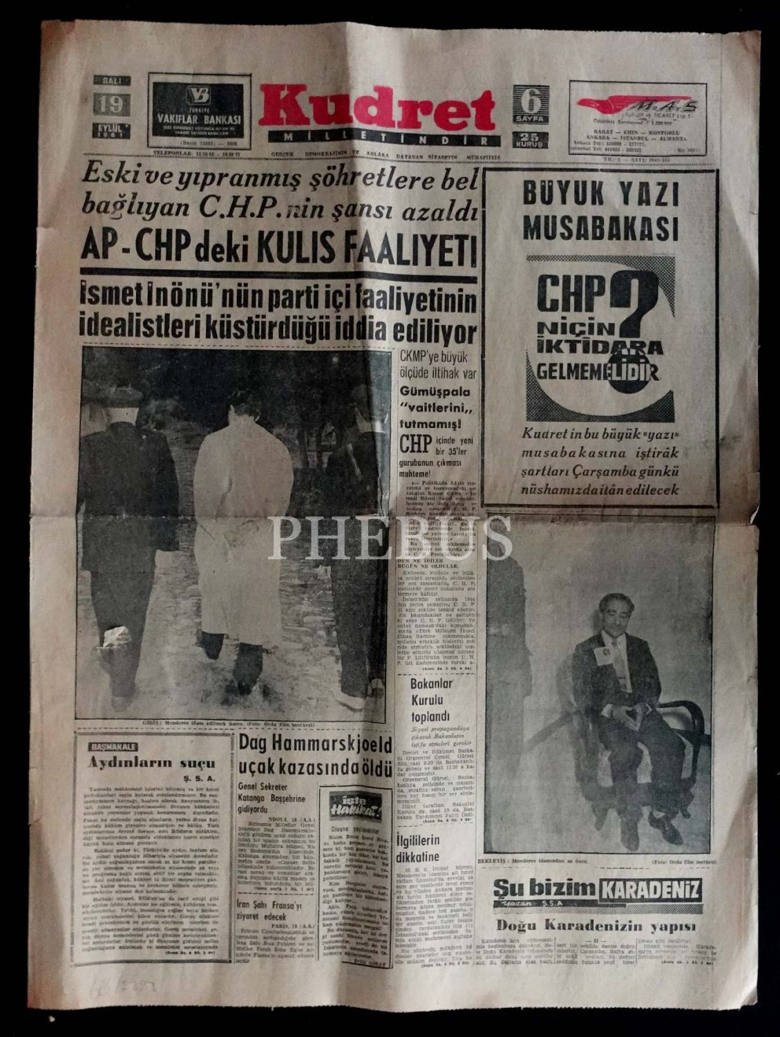 1961 tarihli Kudret Gazetesi, 6 sayfa, 43x60 cm