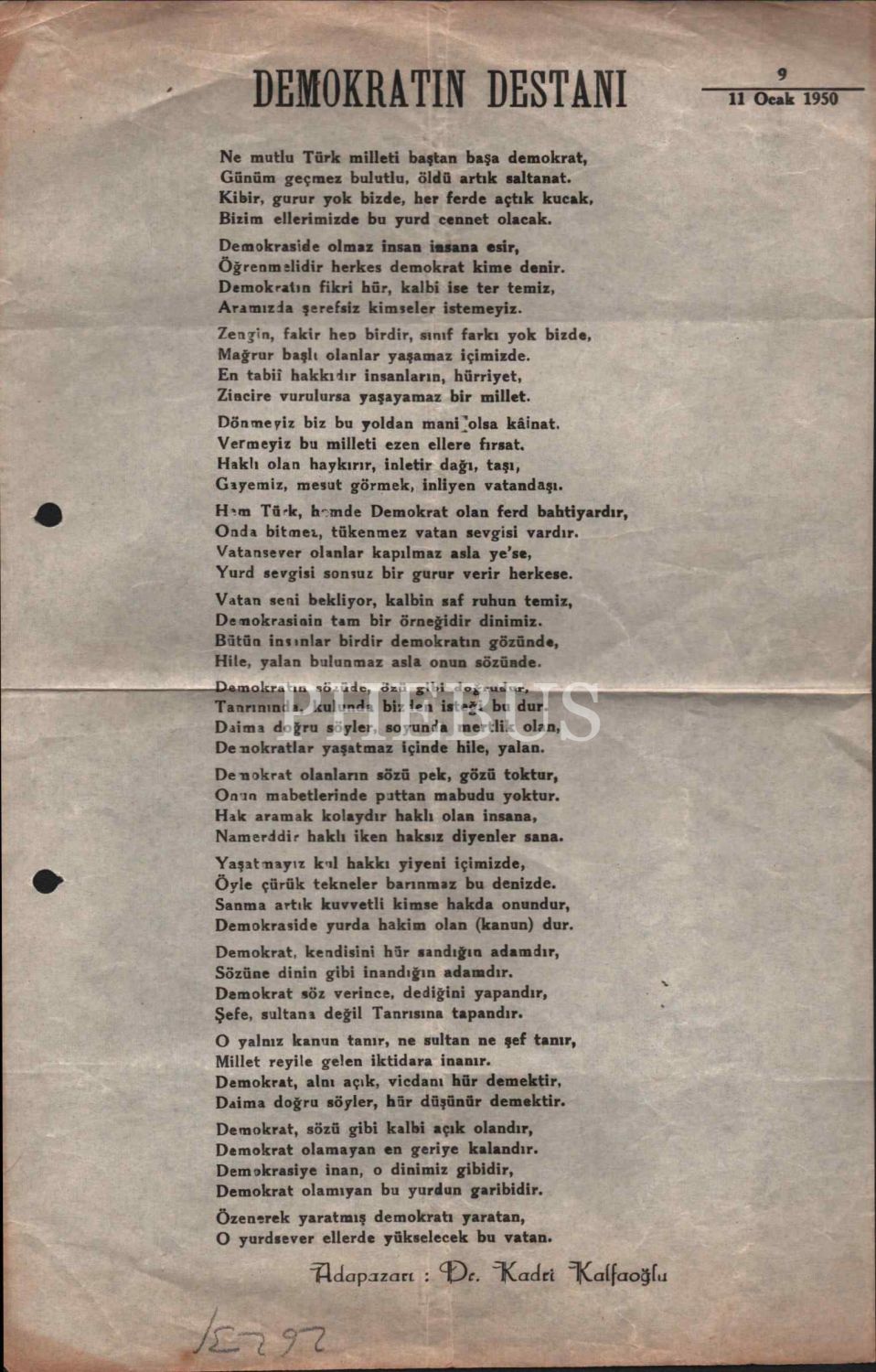 Demokrat´ın Destanı, Dr. Kadri Kalfaoğlu, 11 Ocak 1950, 19x30 cm