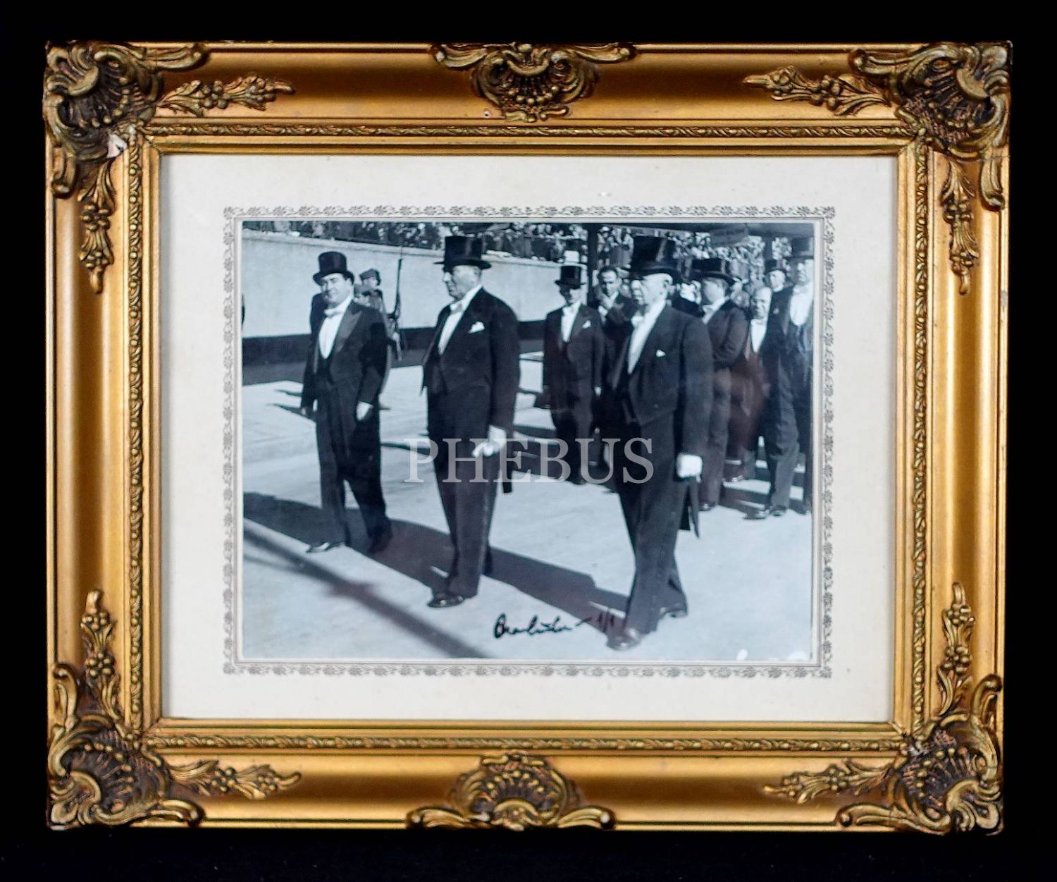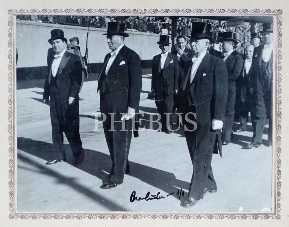 Ara Güler´den ıslak imzalı 1/1 fotoğraf; Atatürk naaşının Etnoğrafya Müzesi´nden Anıtkabir´e nakli esnasında Adnan Menderes, Refik Koraltan ve İsmet İnönü, 38x40 cm