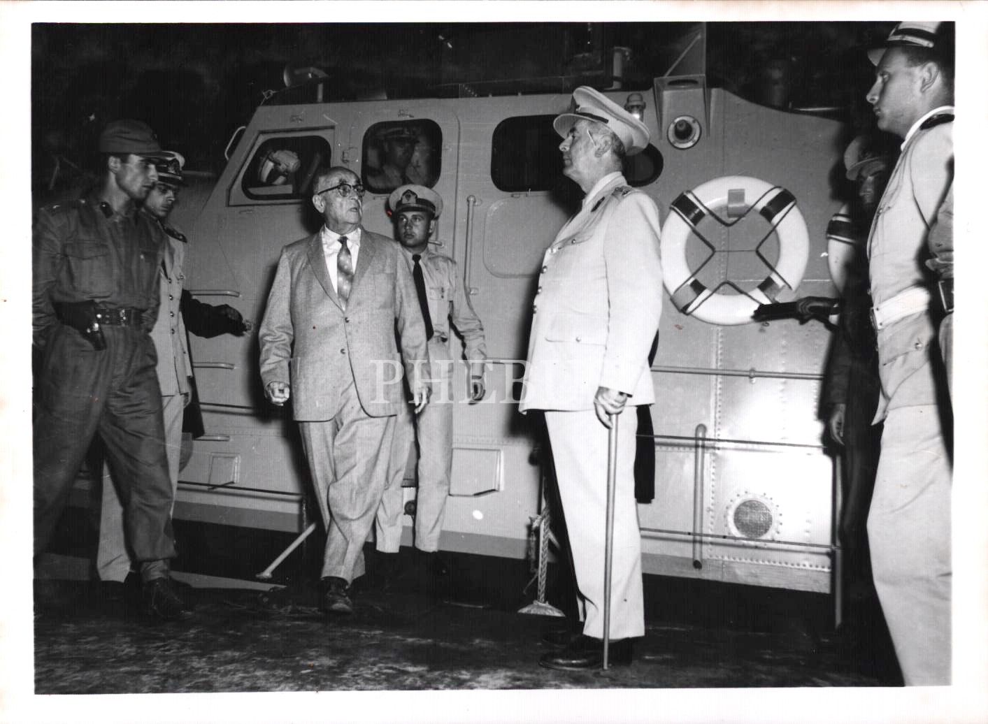 Celal Bayar´ın askerî araç ile Yassıada´ya getirilişi, T. C. Ordusu Foto Film Merkezi kaşeli, 13x18 cm
