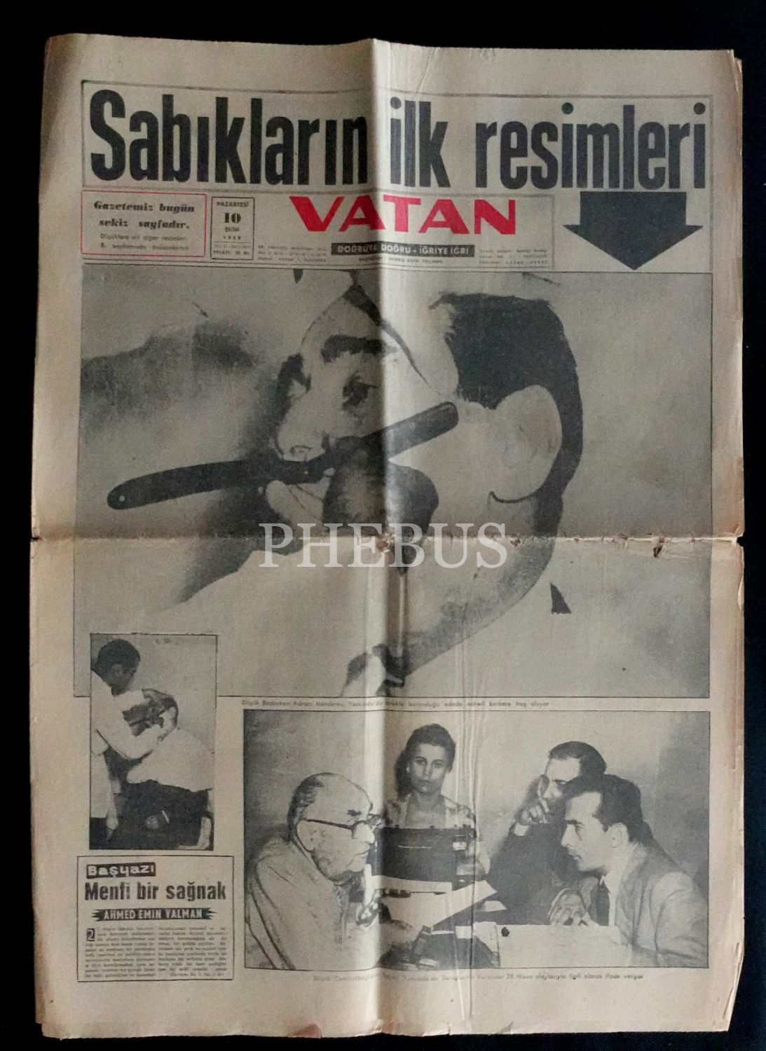 "Sabıkların İlk Resimleri" başlığıyla Yassıada´dan ilk görüntüleri manşetine taşıyan 10 Ekim 1960 tarihli Vatan Gazetesi, 8 sayfa, 42x60 cm