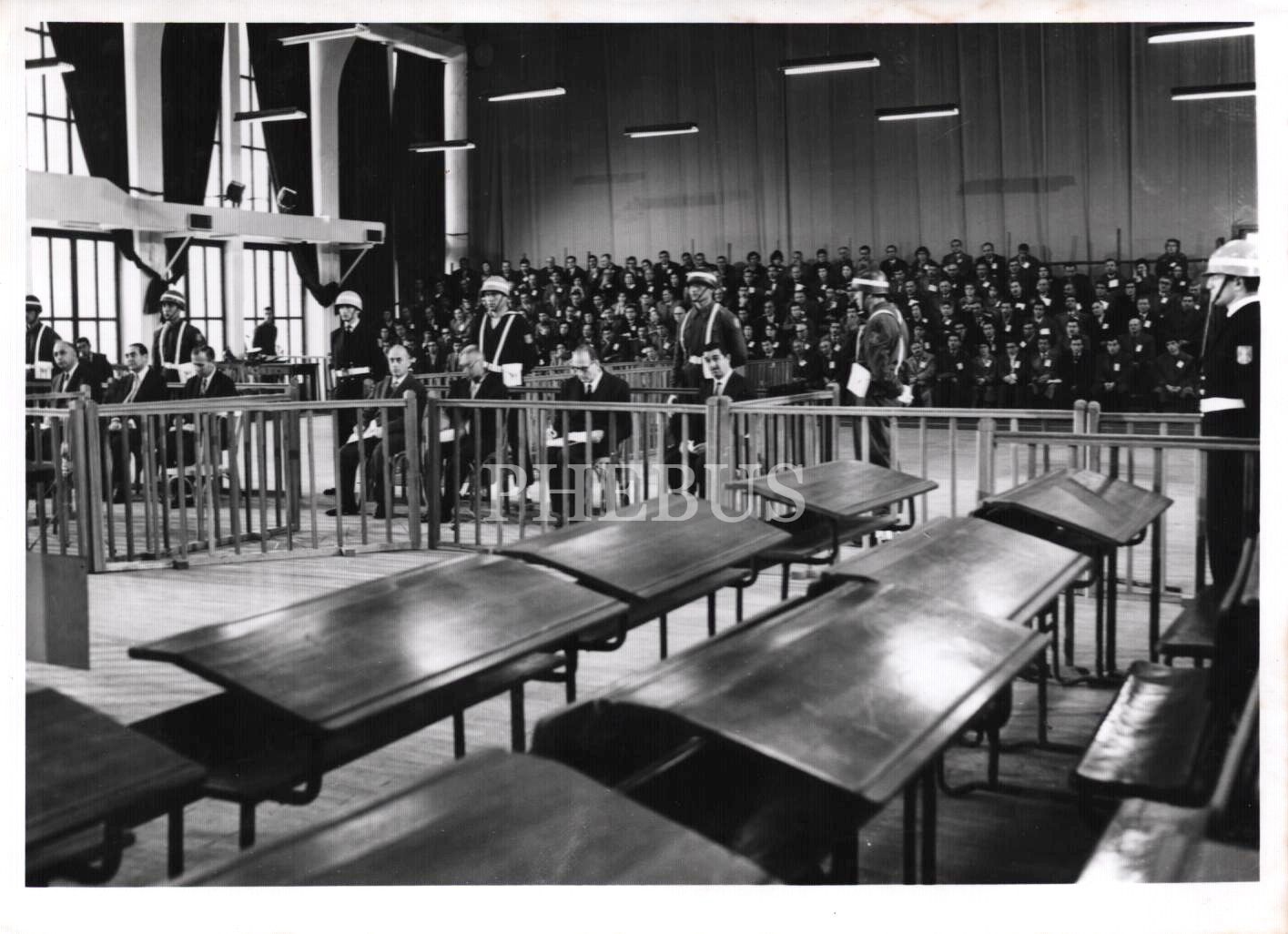 Adnan Menderes, Fatin Rüştü Zorlu, Hasan Polatkan haklarında yapılan suçlamaları dinlerken, T. C. Foto Film Merkezi kaşeli 13x18 cm