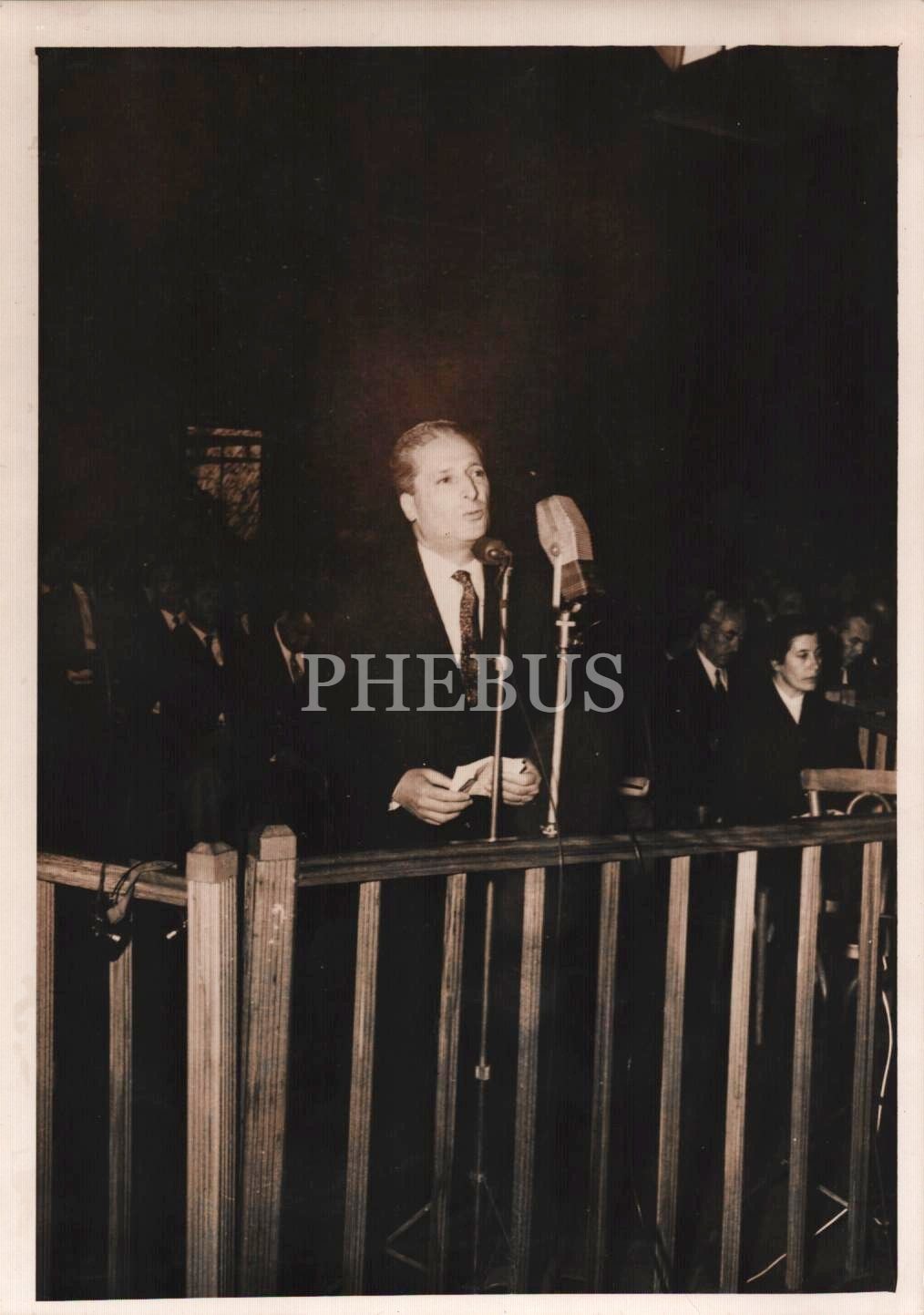 Mıgırdıc Şellefyan Yassıada Mahkemesinde Savunmasını yaparken, T. C. Foto Film Merkezi kaşeli 13x18 cm