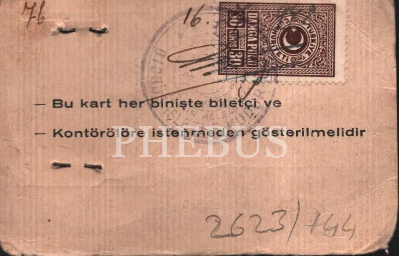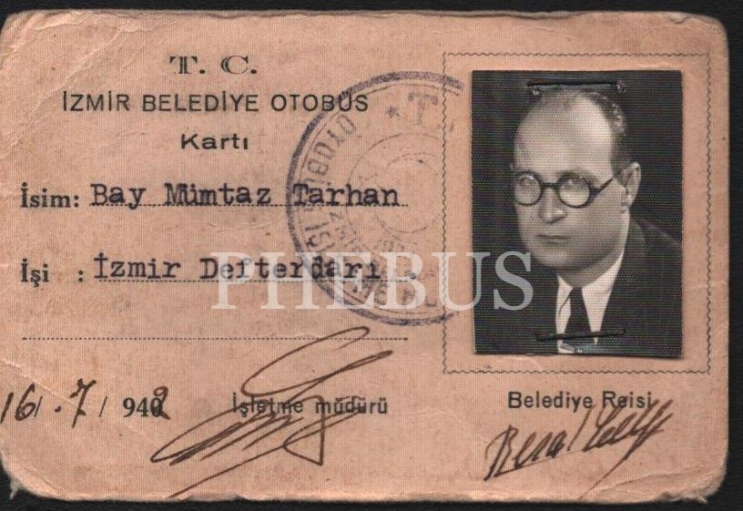 Mümtaz Tarhan´a ait İzmir Belediyesi otobüs kartı, 7x11 cm