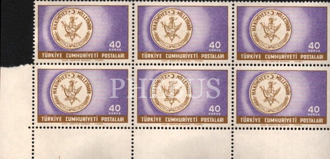 27 Mayıs amblemli altı adet posta pulu, 2x4 cm