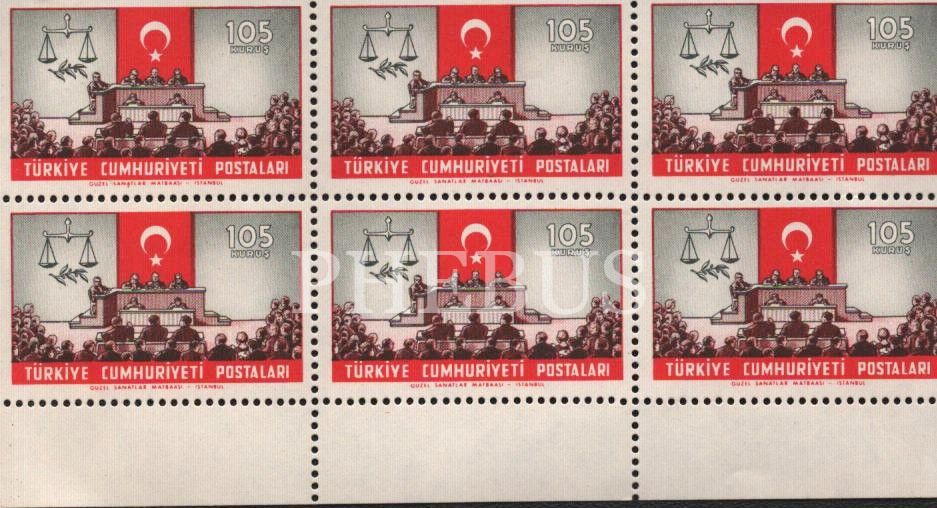 T. C. mahkeme salonu görselli altı adet posta pulu, 2x4 cm