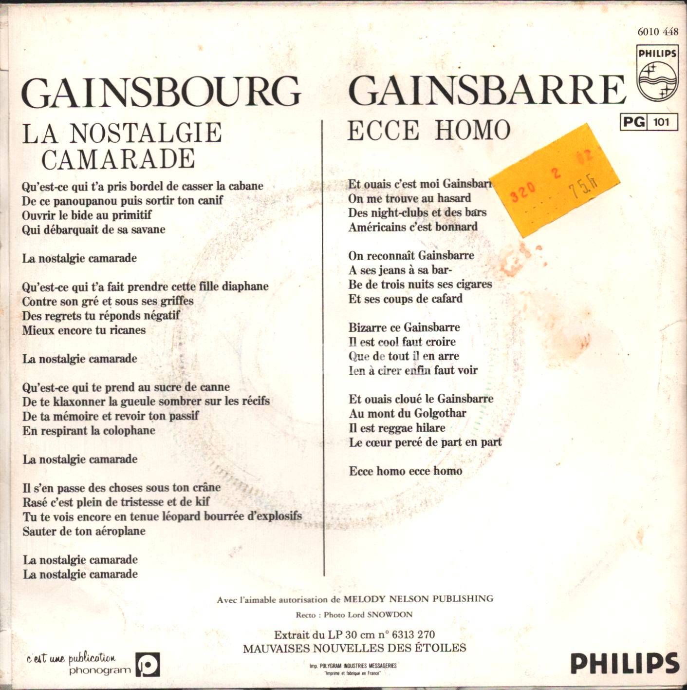 GAINSBOURG - Ecce Homo / La Nostalgie Camarade