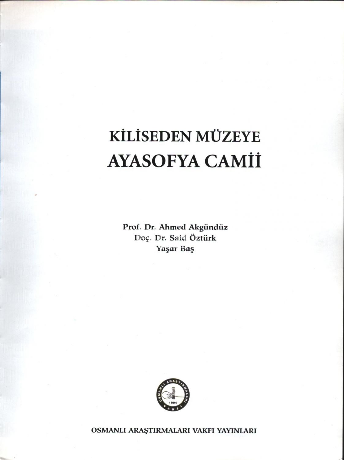 KİLİSEDEN MÜZEYE AYASOFYA CAMİİ, Prof. Dr. Ahmed Akgündüz - Doç. Dr. Said Öztürk - Yaşar Baş, Osmanlı Araştırmaları Vakfı Yayınları, Haziran 2006 - İstanbul, 527 sayfa, 20x26 cm