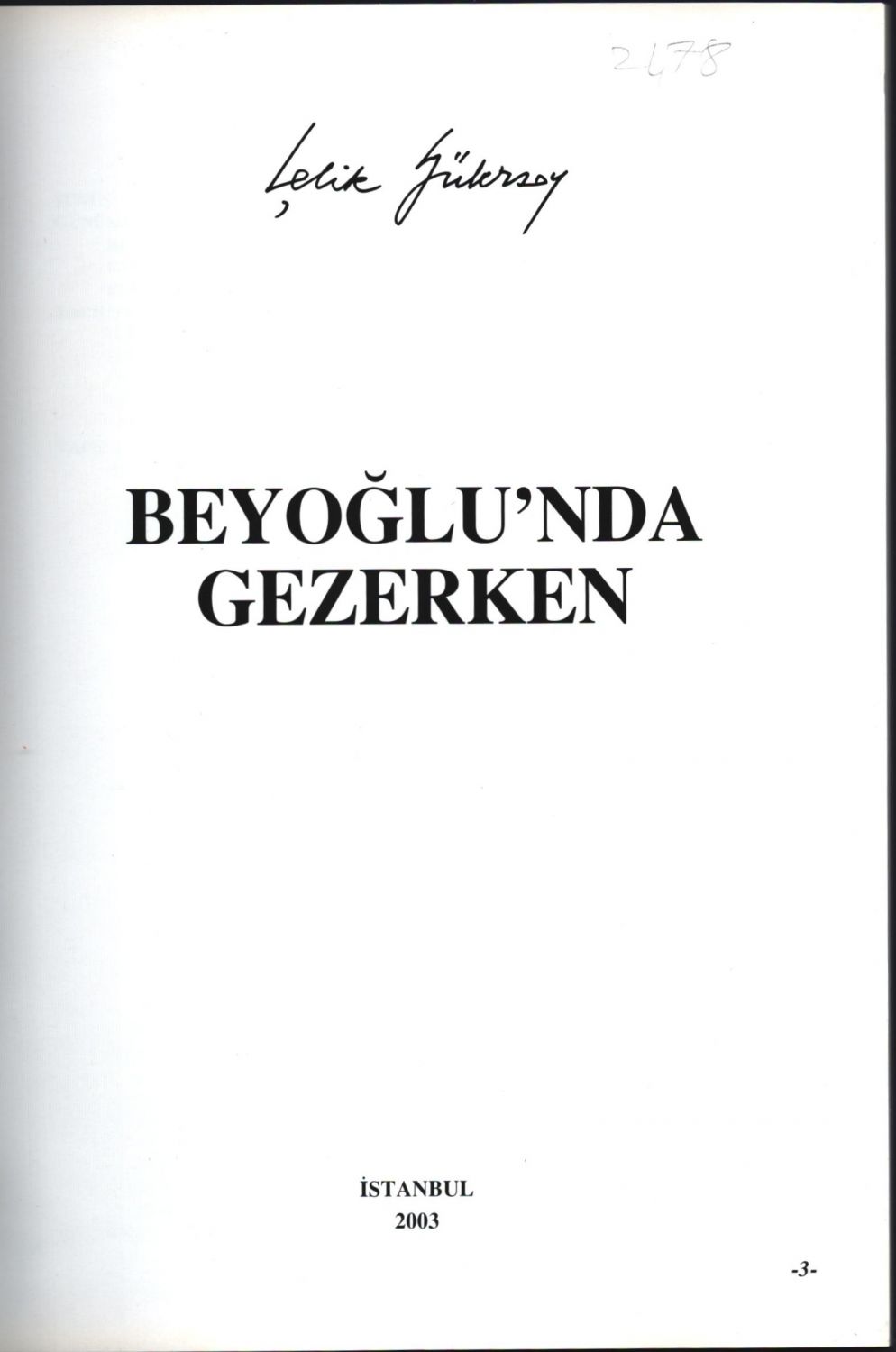 BEYOĞLU´NDA GEZERKEN, Çelik Gülersoy, Çelik Gülersoy Vakfı Yayını, İstanbul - 2003, 175 sayfa, 22x30 cm