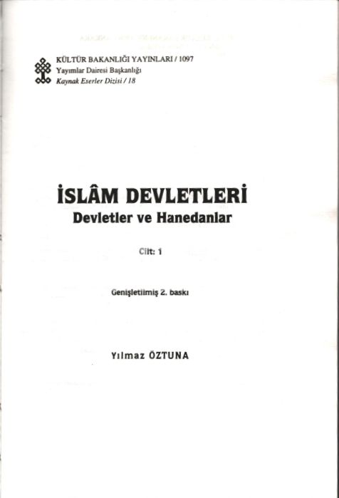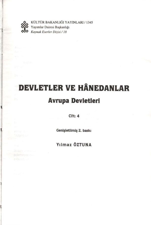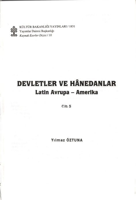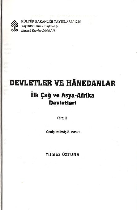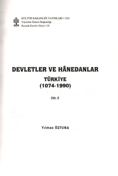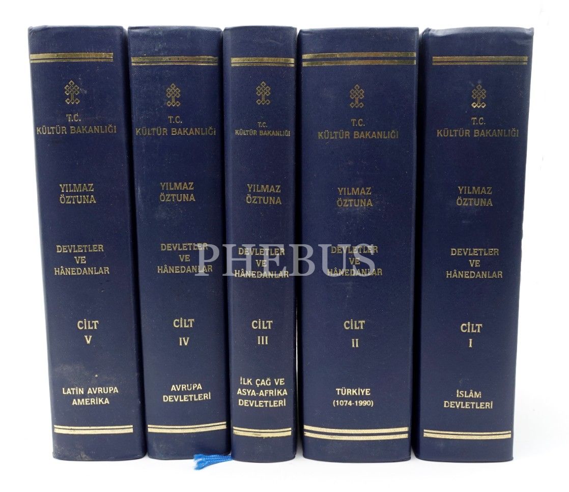 DEVLETLER VE HANEDANLAR (5 Cilt Takım), Yılmaz Öztuna, T.C. Kültür Bakanlığı, Ankara - 1996, 17x24 cm, 5. cildin metin kısmı sırttan ayrık haliyle