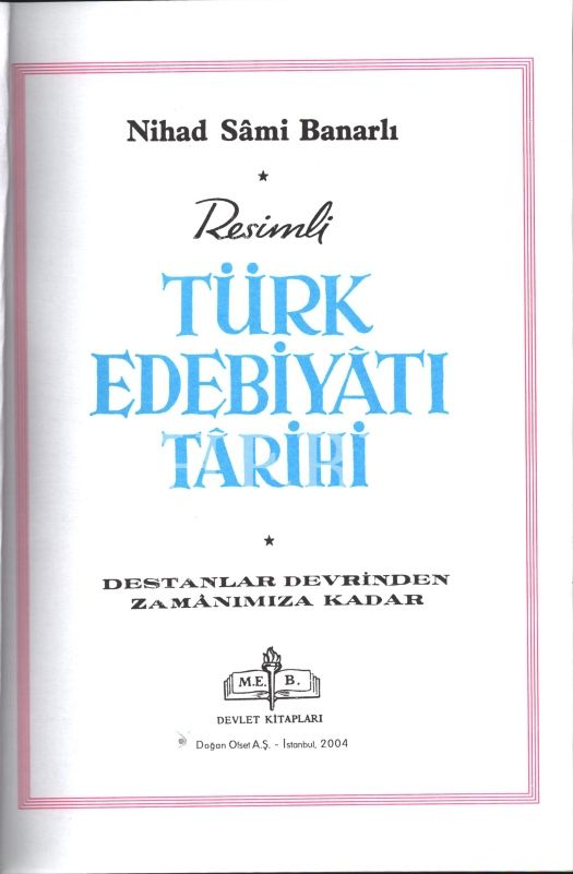 RESİMLİ TÜRK EDEBİYATI TARİHİ (Cilt I-II), Nihad Sami Banarlı, M.E.B. Devlet Kitapları, 2004, 634+725 sayfa, 20x28 cm
