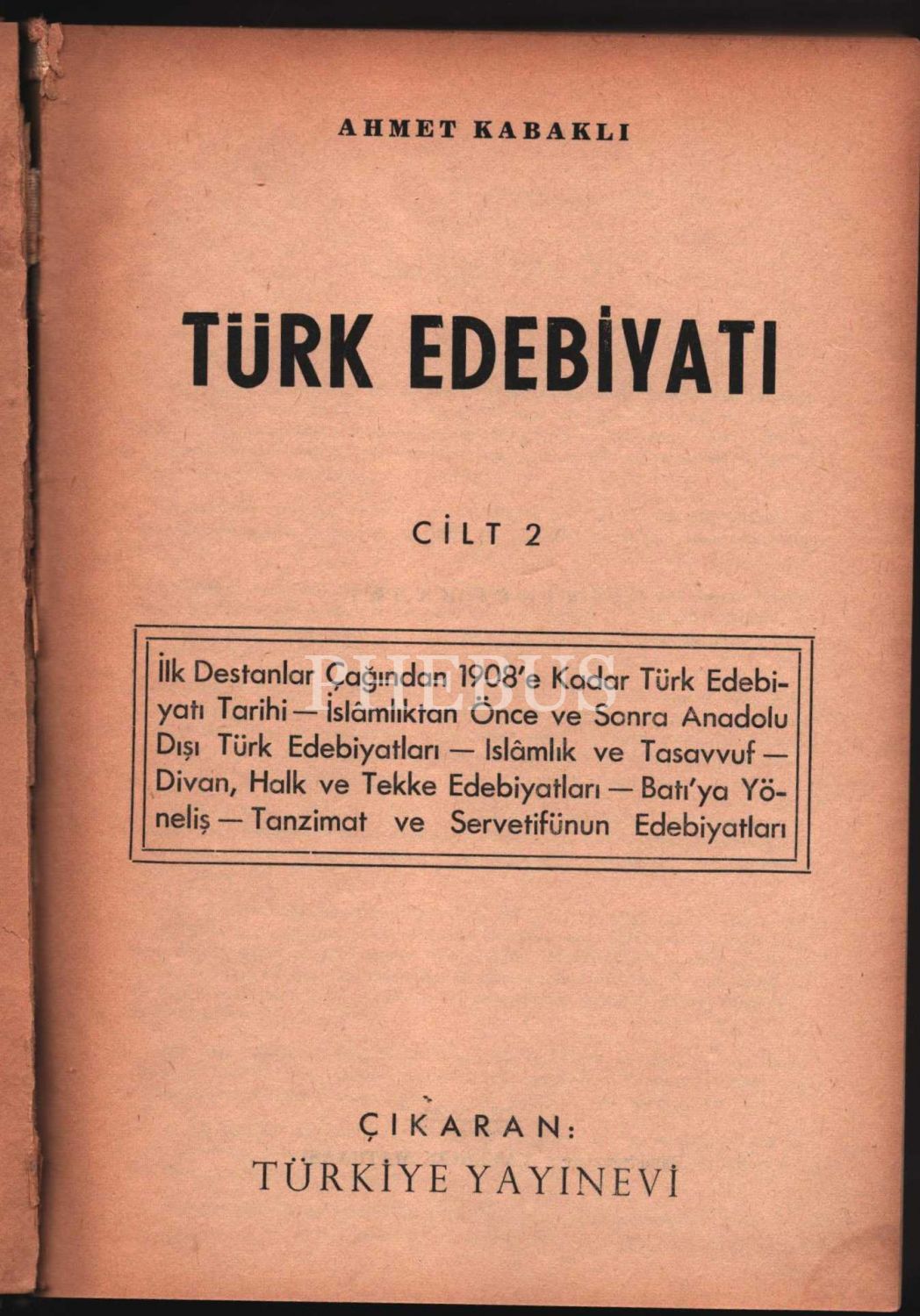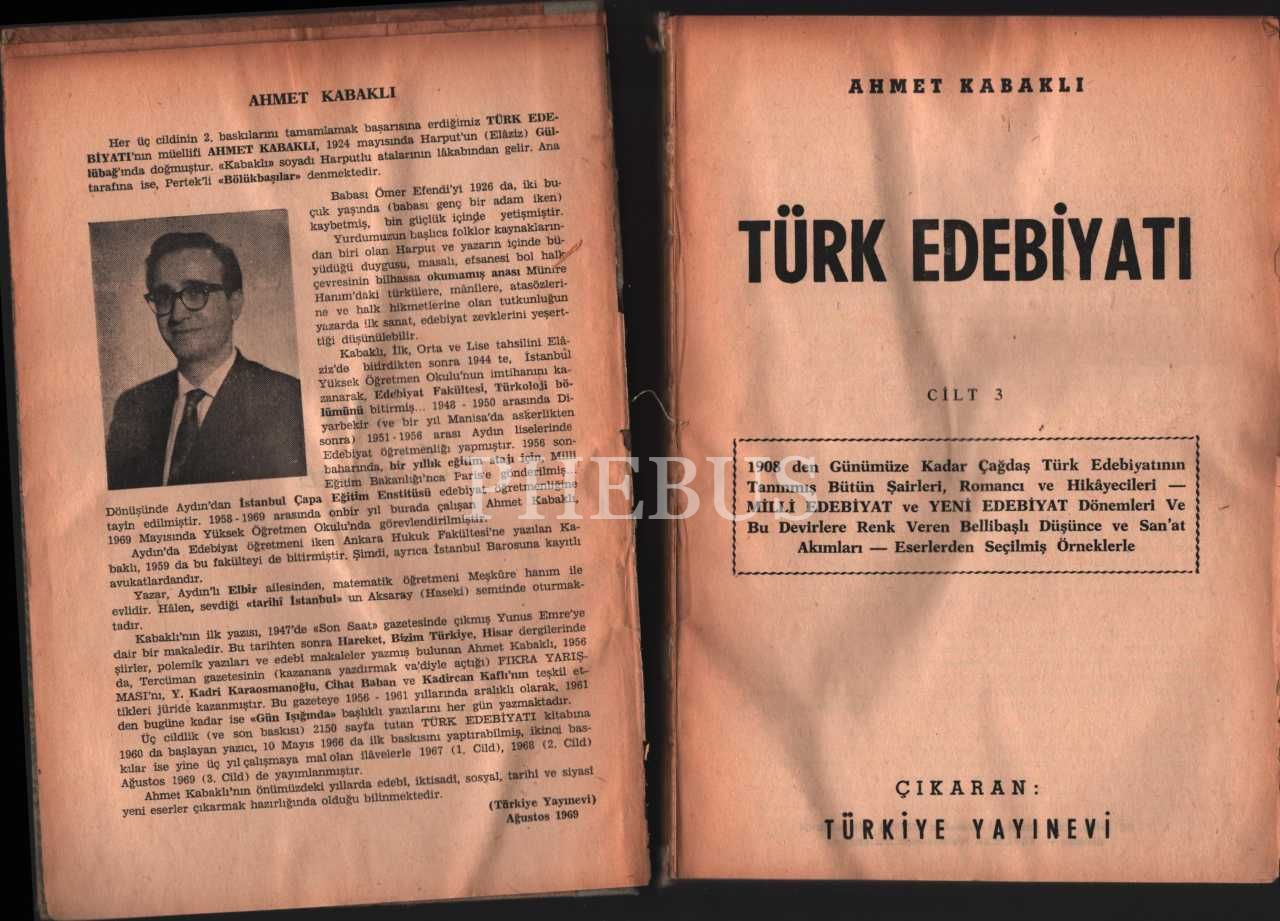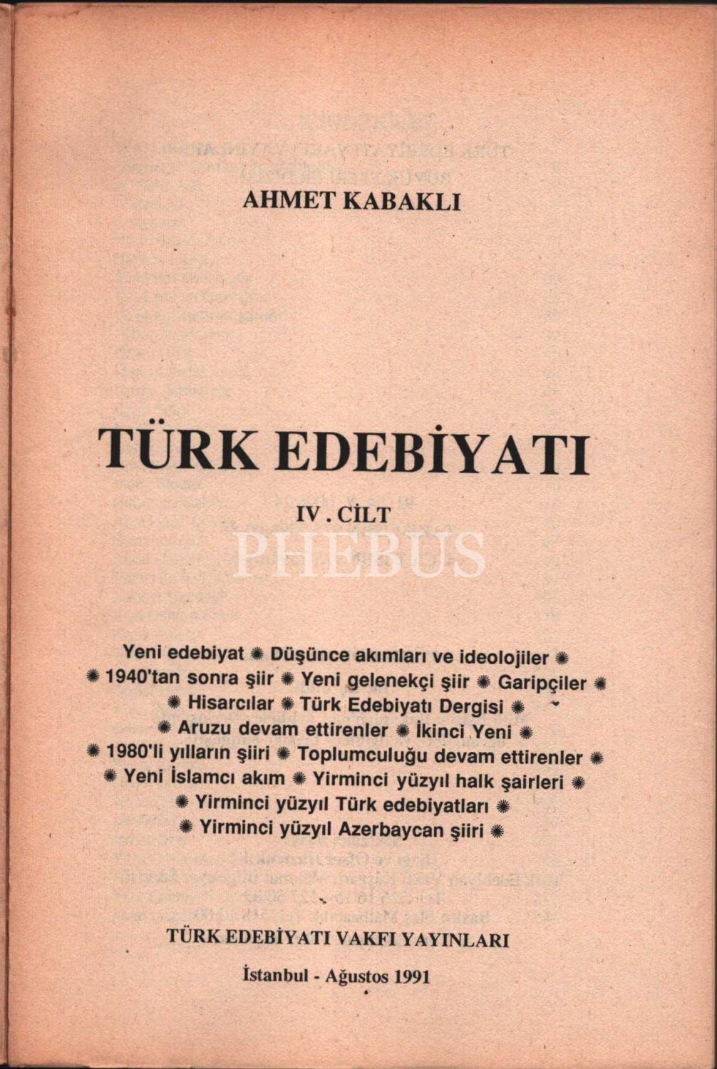 TÜRK EDEBİYATI (4 Cilt), Ahmet Kabaklı, Türkiye Yayınevi - Türk Edebiyatı Vakfı Yayınları, muhtelif yıllara ait baskılar, 702+752+735+806 sayfa, 17x24 cm