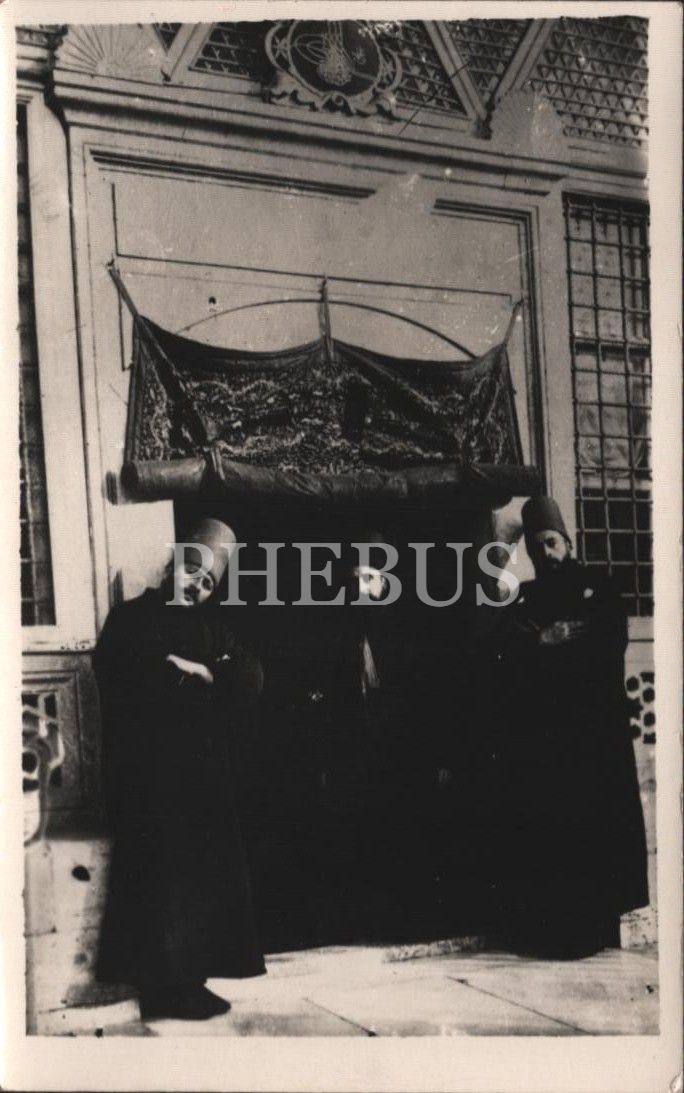 Konya Mevlevîhânesi önünde Veled Çelebi Hazretleri (ortada), 9x14 cm