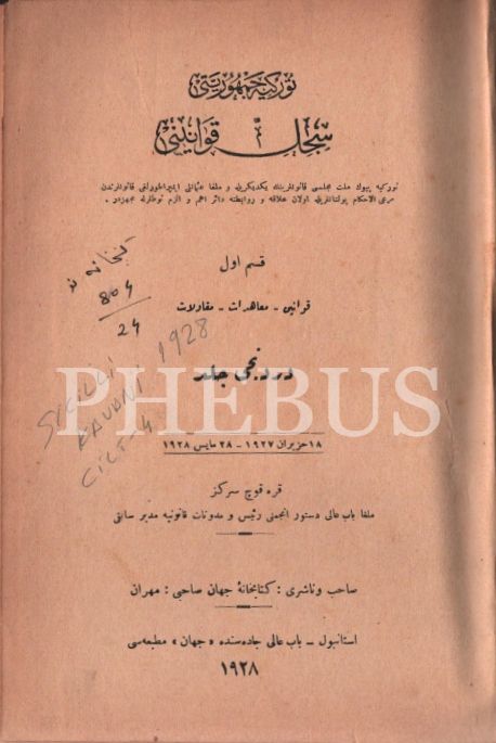 SİCİL KAVANİNİ 4. Cilt, Cihan Matbaası, 1928, 635 sayfa, 17x24 cm