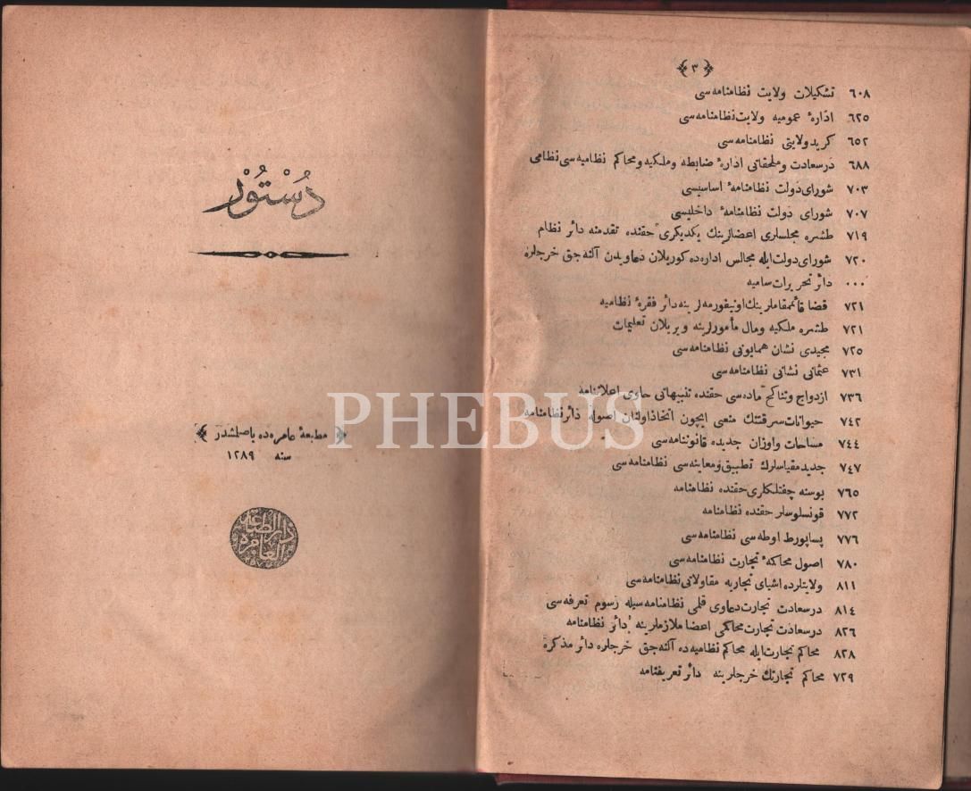 DÜSTUR (1. Cilt), Matbaa-i Âmire, 1289, 830 sayfa, 17x24 cm