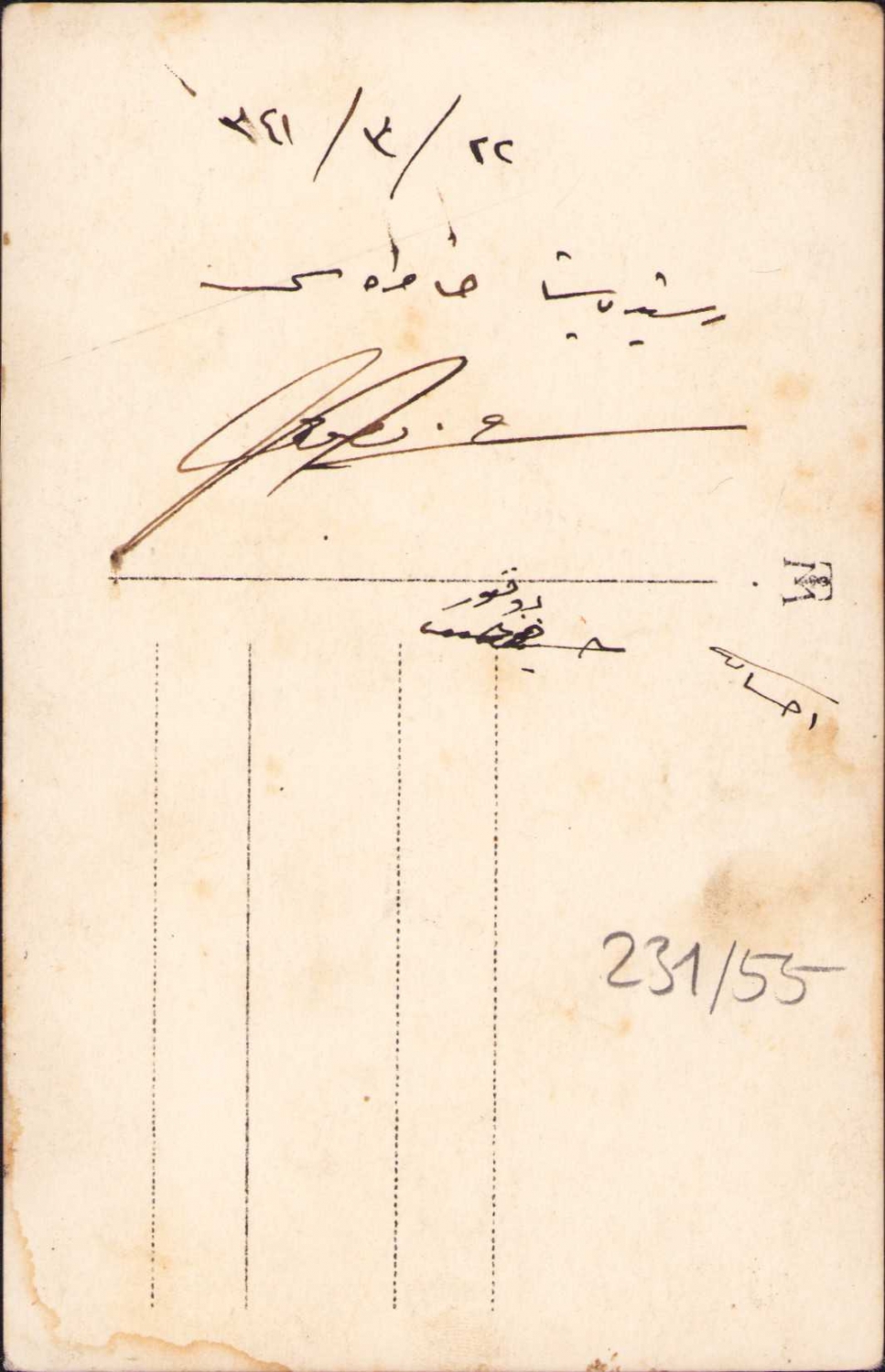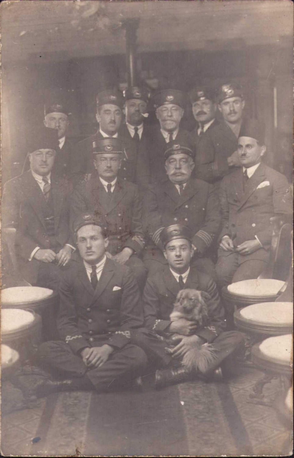 Osmanlı bahriyeliler, kucağında köpek ile, arkası ithaflı imzalı