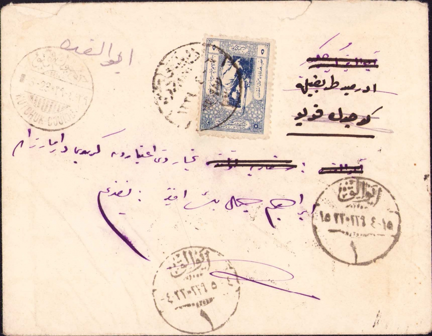 Osmanlı pullu Küçükkuyu damgalı Edremit adresli zarf, İbrahim Cemil Beyefendi