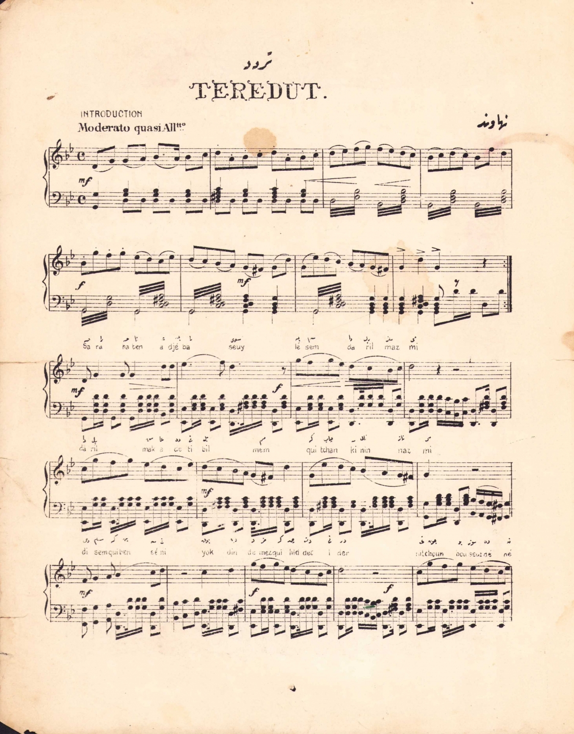 Osmanlı Tereddüt şarkı nota, ed., Şamlı Selim, Osmanlıca - Fransızca, 4 sayfa