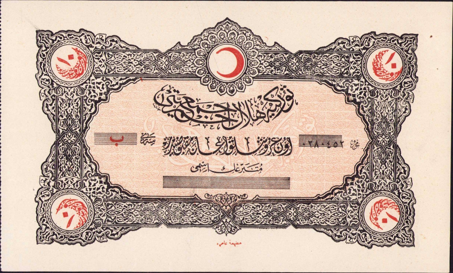 Hilali Ahmer Cemiyeti 10 kuruş makbuz, 21x12cm