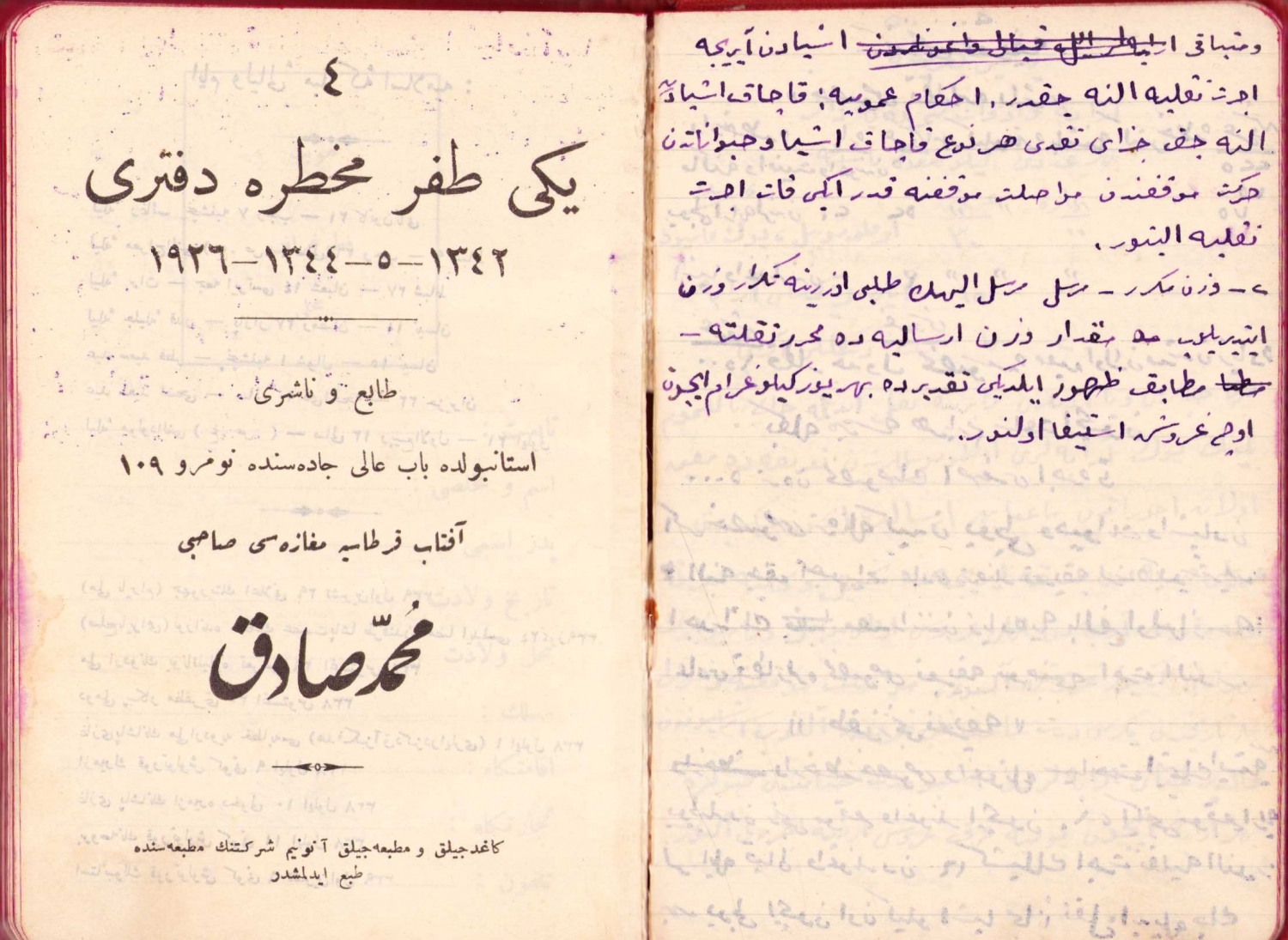 1926 yılı Yeni Zafer Muhtıra Defteri, Naşırı; Mehmed Sadık, Kağıtçılık ve Matbaacılık Anonim Şirketinin matbaasında basılmıştır, ajanda, 9x14 cm