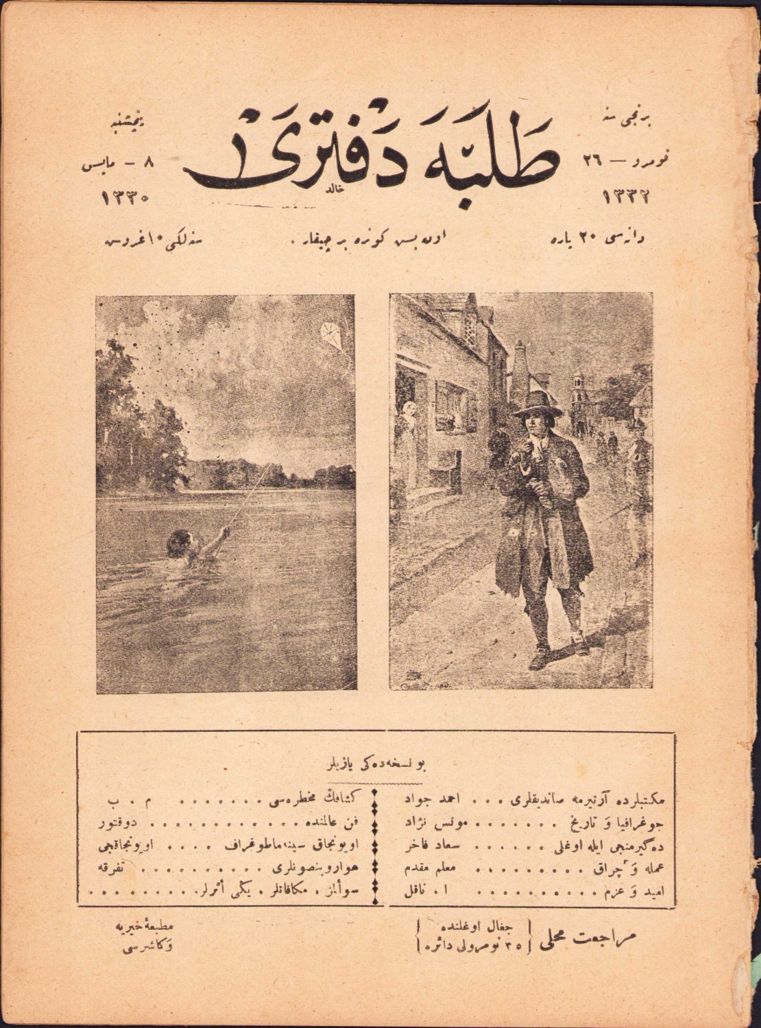 Talebe Defteri Mecmuası, Matbaa-i Hayriye ve Şirketi, 1330 tarihli, Osmanlıca, resimli, 20 sayfa, 18x24 cm