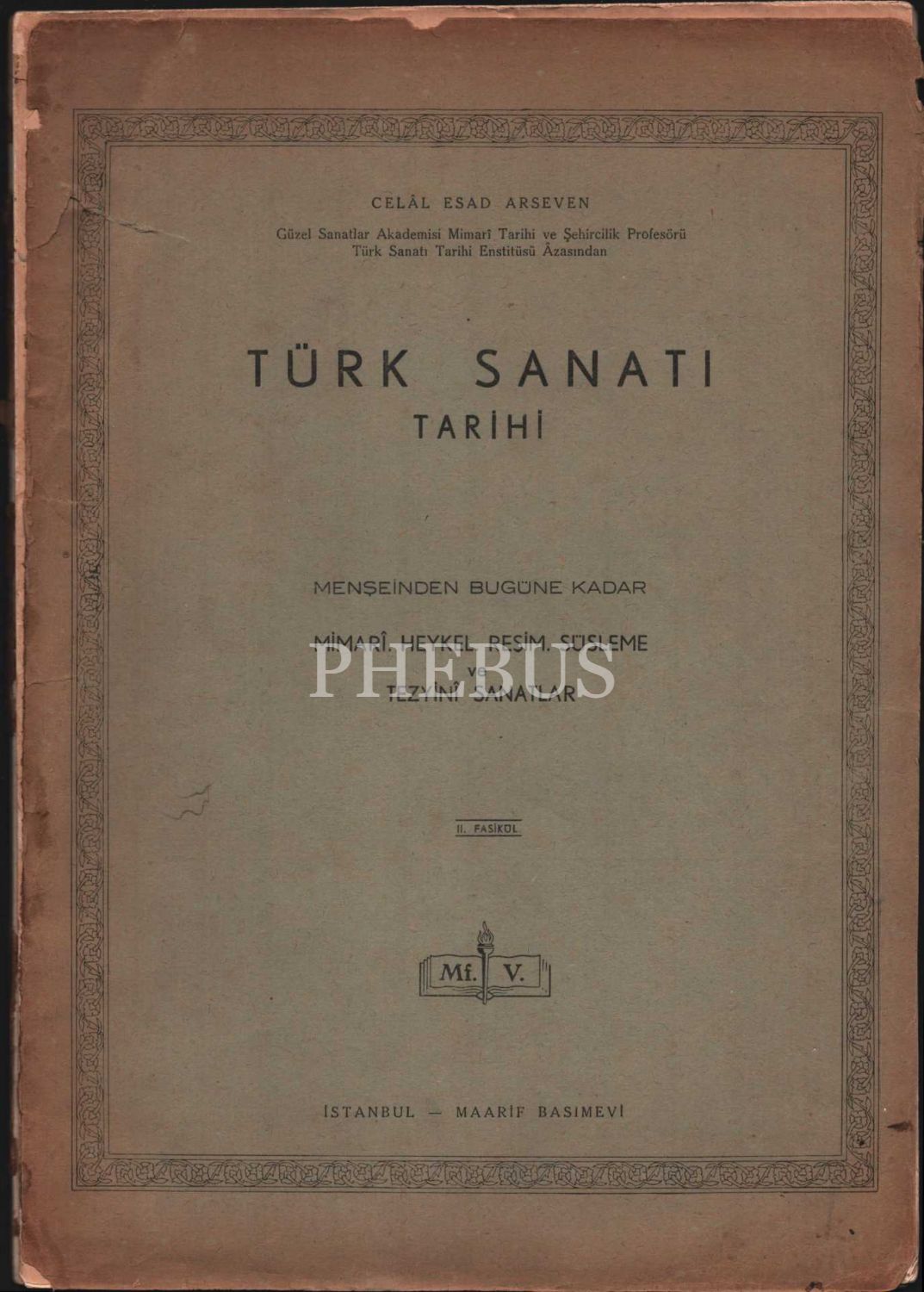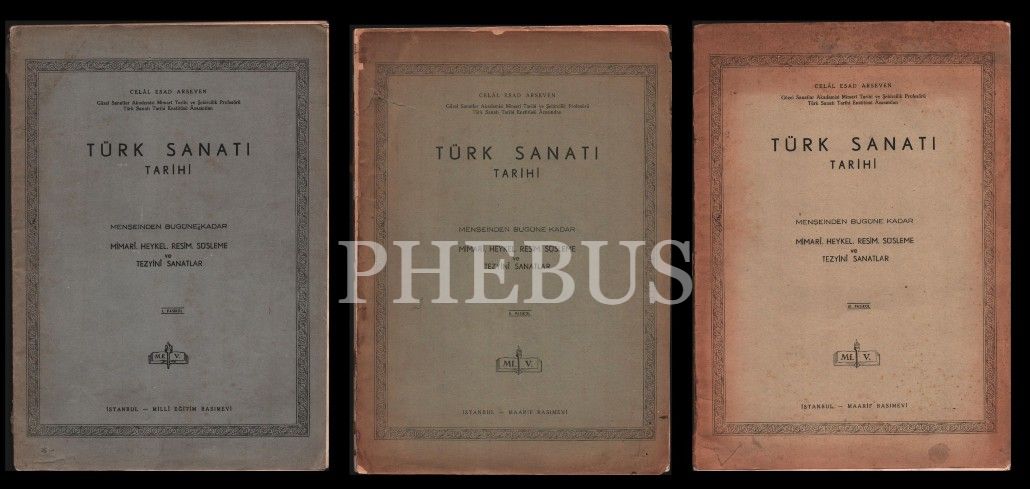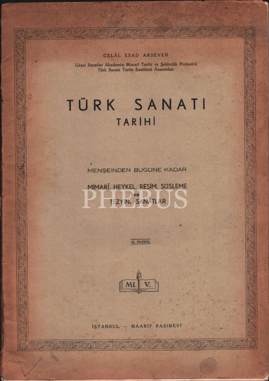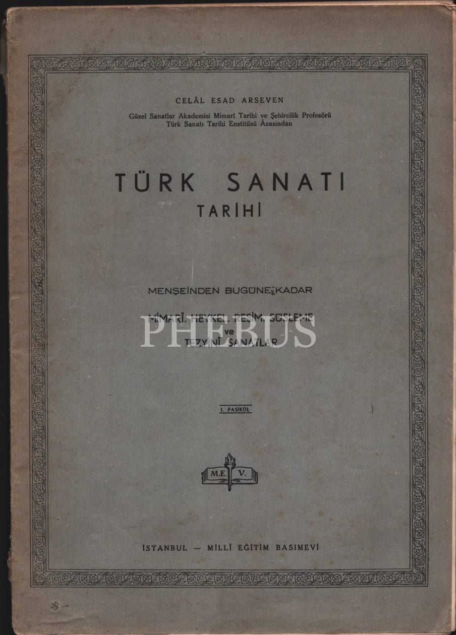 TÜRK SANATI TARİHİ - MENŞEİNDEN BUGÜNE KADAR MİMARÎ, HEYKEL, RESİM, SÜSLEME VE TEZYİNÎ SANATLAR (3 Fasikül), Celâl Esad Arseven´den ithaflı ve imzalı, İstanbul - Maarif Basımevi, 240 sayfa, 25x35 cm