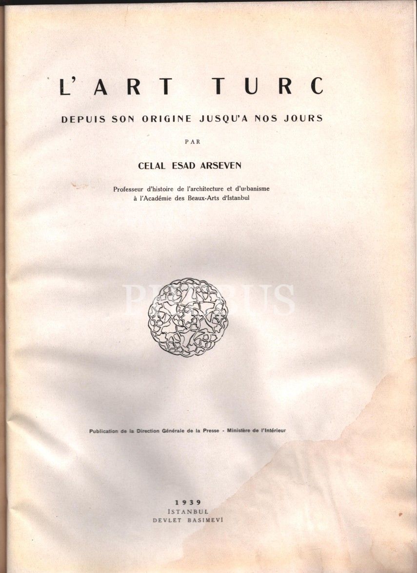 L´ART TURC, Celâl Esad Arseven, Fransızca, Devlet Basımevi, İstanbul - 1939, 305 sayfa, 25x34 cm, ön kapak ve ilk birkaç sayfa ciltten ayrık haliyle