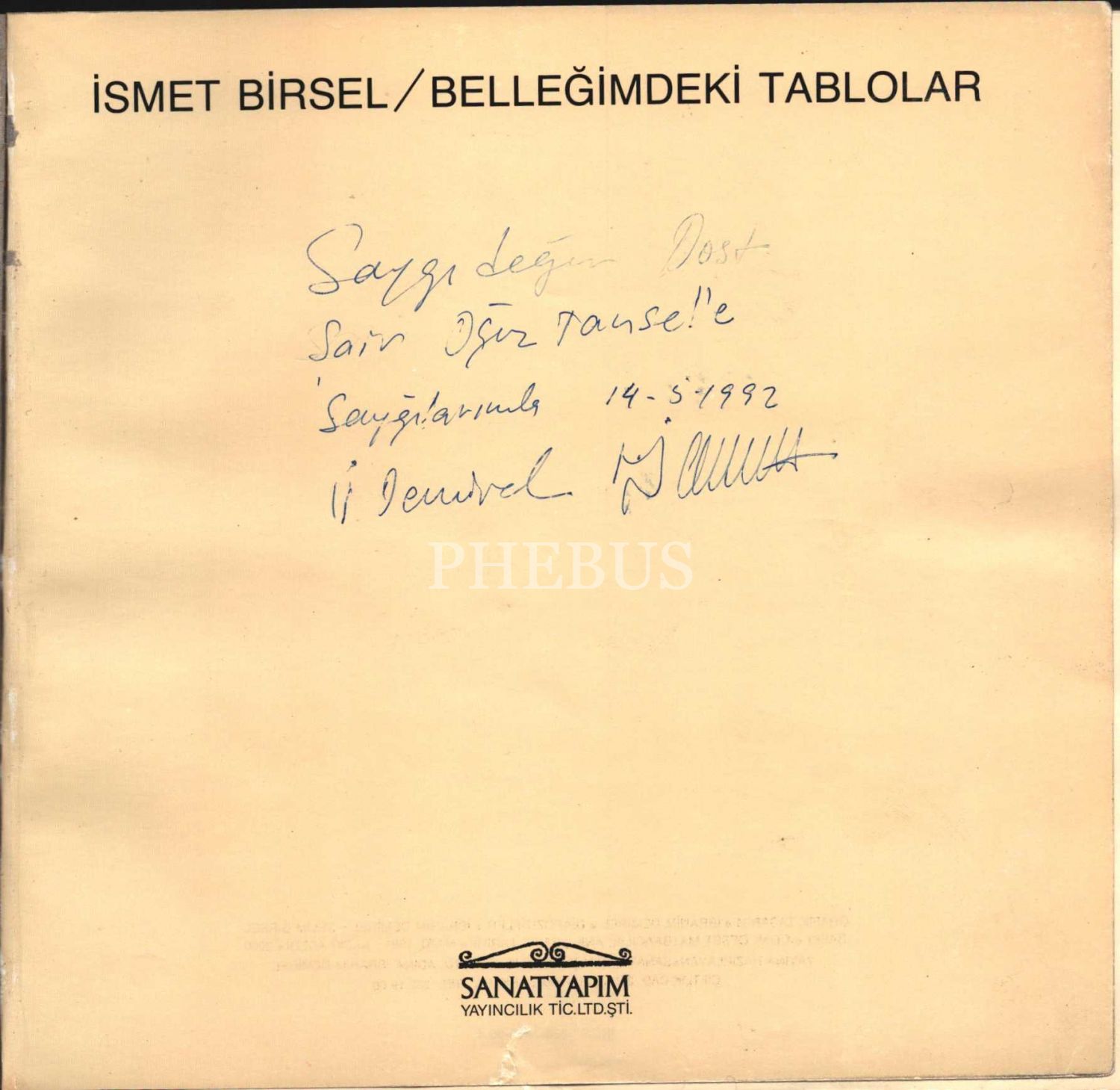 İSMET BİRSEL / BELLEĞİMDEKİ TABLOLAR, İsmet Birsel´den ithaflı ve imzalı, Sanat Yapım Yayıncılık, Mart 1991, 140 sayfa, 23x22 cm