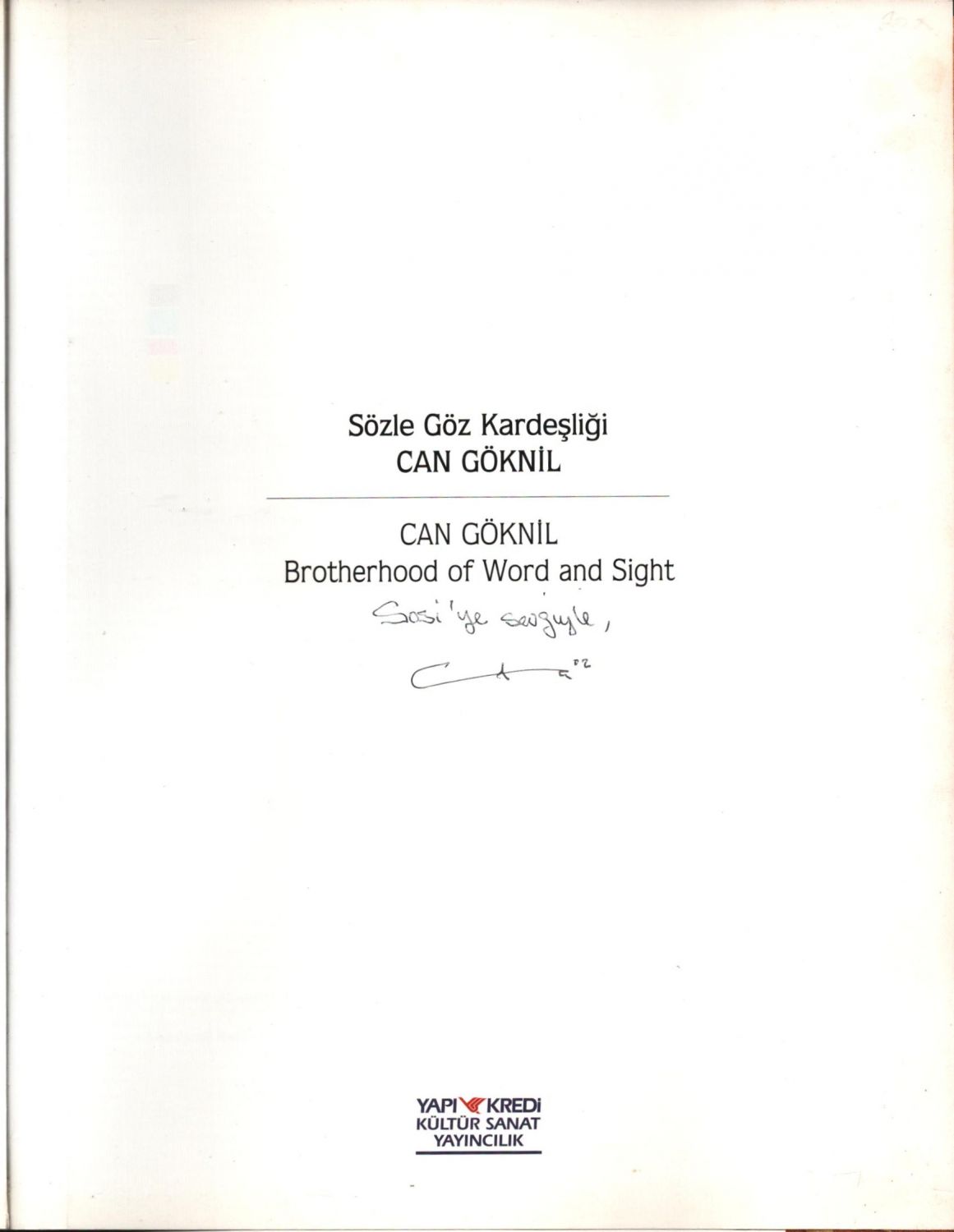 SÖZLE GÖZ KARDEŞLİĞİ, Can Göknil´den ithaflı ve imzalı, Yapı Kredi Kültür Sanat Yayıncılık, İstanbul - Kasım 2002, 111 sayfa, 23x29 cm