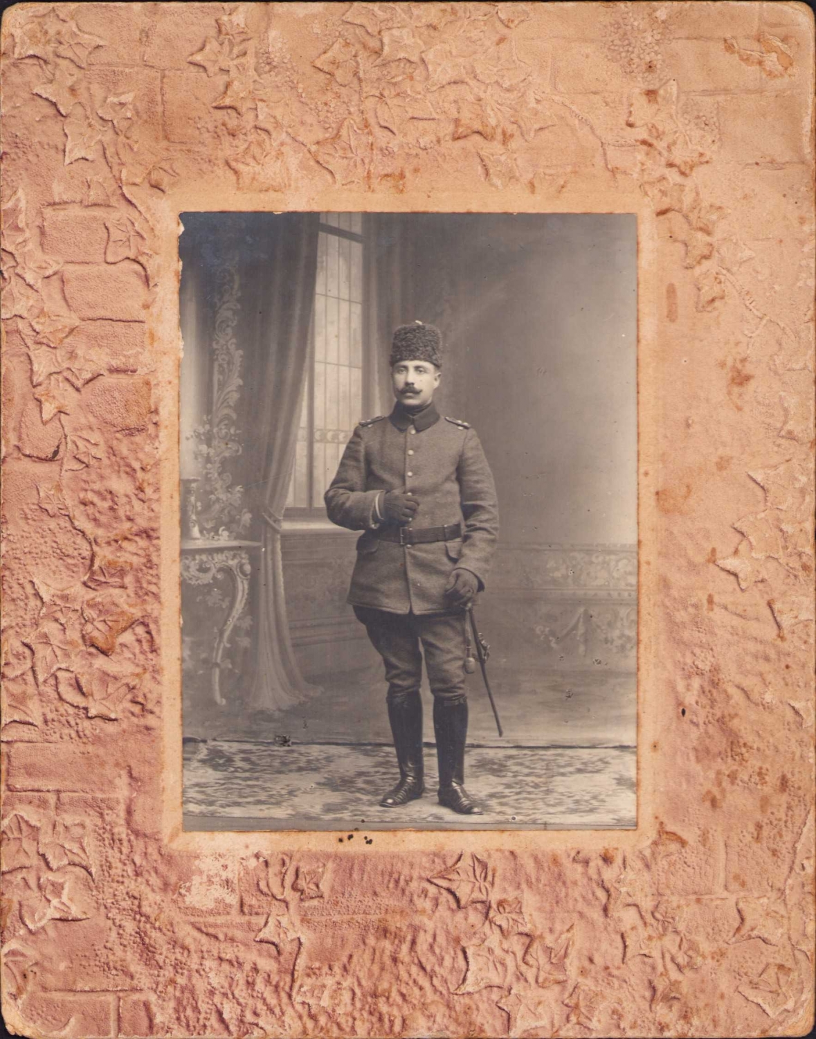 Ermeni Mihran Dodikozian Fotoğrafhanesi Tekfurdağı damgalı, Osmanlı kalpaklı kılıçlı subay kabin foto, 15x19 cm, nadir