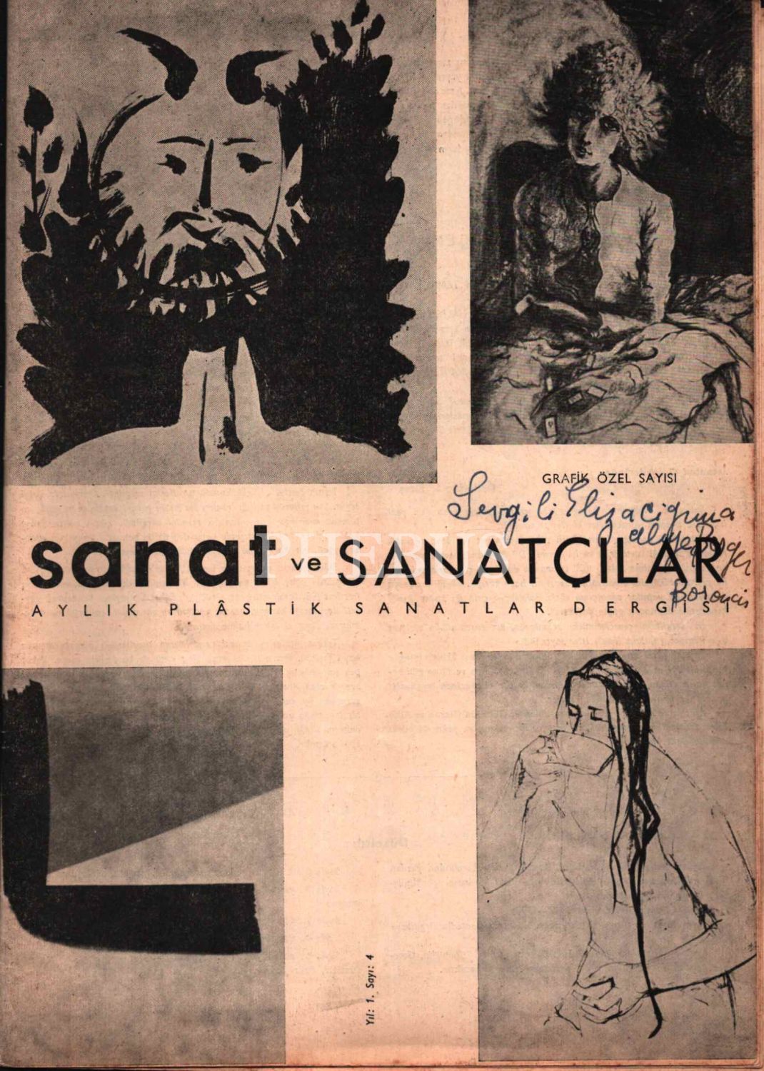 Aliye Berger´den imzalı SANAT VE SANATÇILAR - Aylık Plâstik Sanatlar Dergisi, Yıl:1 - Sayı:4, 18 sayfa, 20x28 cm
